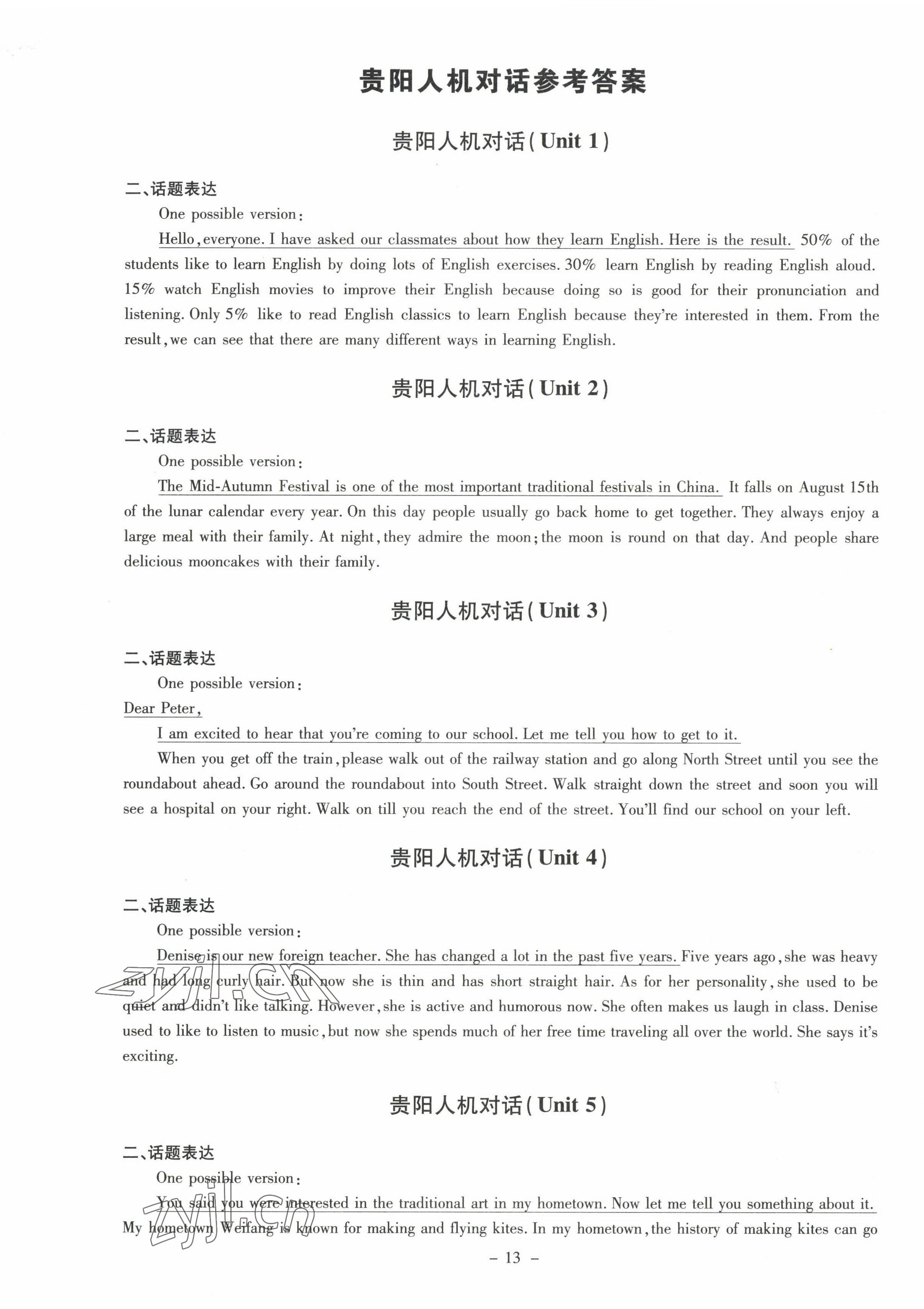 注:目前有些书本章节名称可能整理的还不是很完善,但都是按照顺序排列的,请同学们按照顺序仔细查找。练习册 2022年导与练九年级英语全一册人教版贵阳专版 答案主要是用来给同学们做完题方便对答案用的,请勿直接抄袭。
