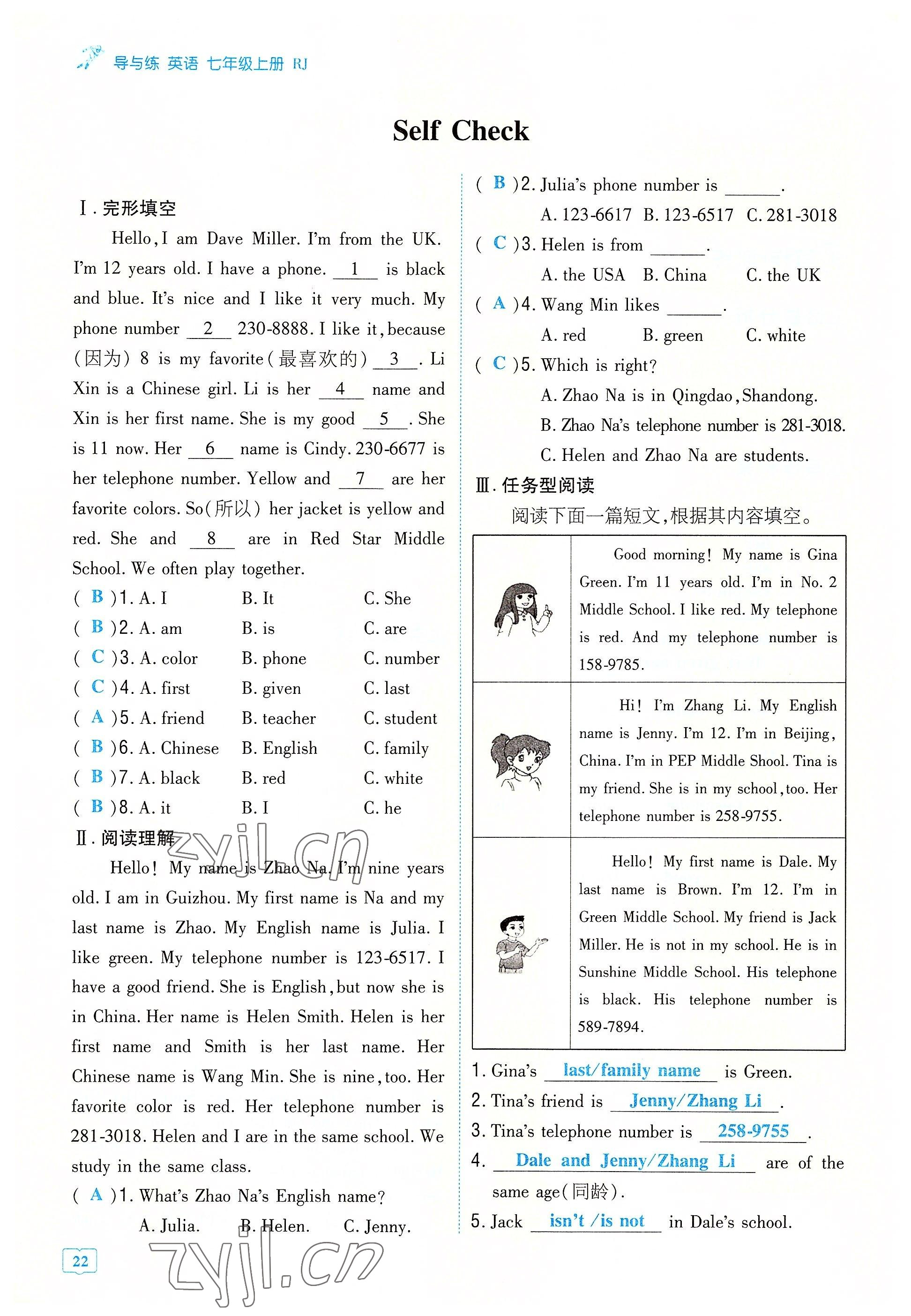 注:目前有些书本章节名称可能整理的还不是很完善,但都是按照顺序排列的,请同学们按照顺序仔细查找。练习册 2022年导与练七年级英语上册人教版贵阳专版 答案主要是用来给同学们做完题方便对答案用的,请勿直接抄袭。