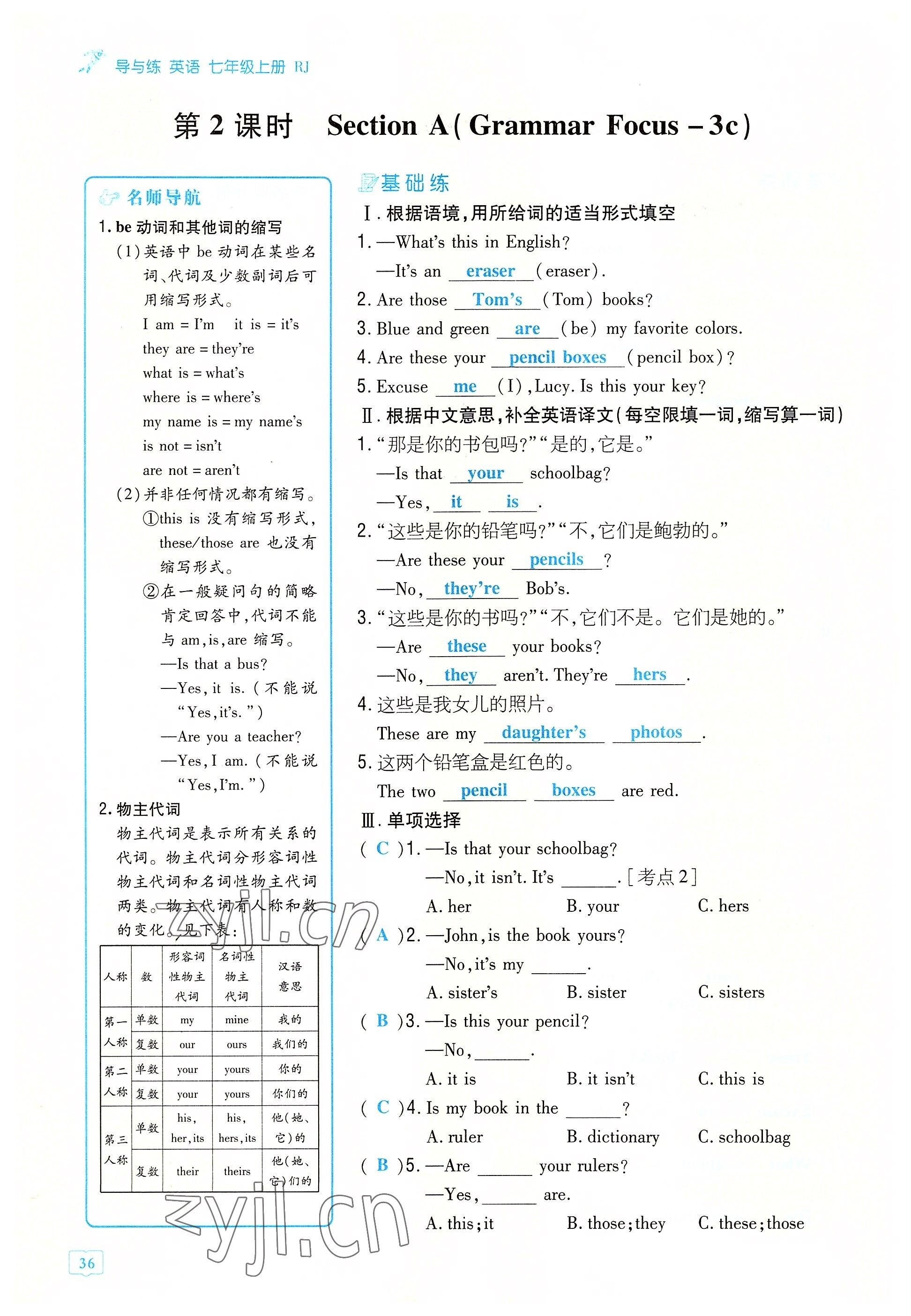 注:目前有些书本章节名称可能整理的还不是很完善,但都是按照顺序排列的,请同学们按照顺序仔细查找。练习册 2022年导与练七年级英语上册人教版贵阳专版 答案主要是用来给同学们做完题方便对答案用的,请勿直接抄袭。