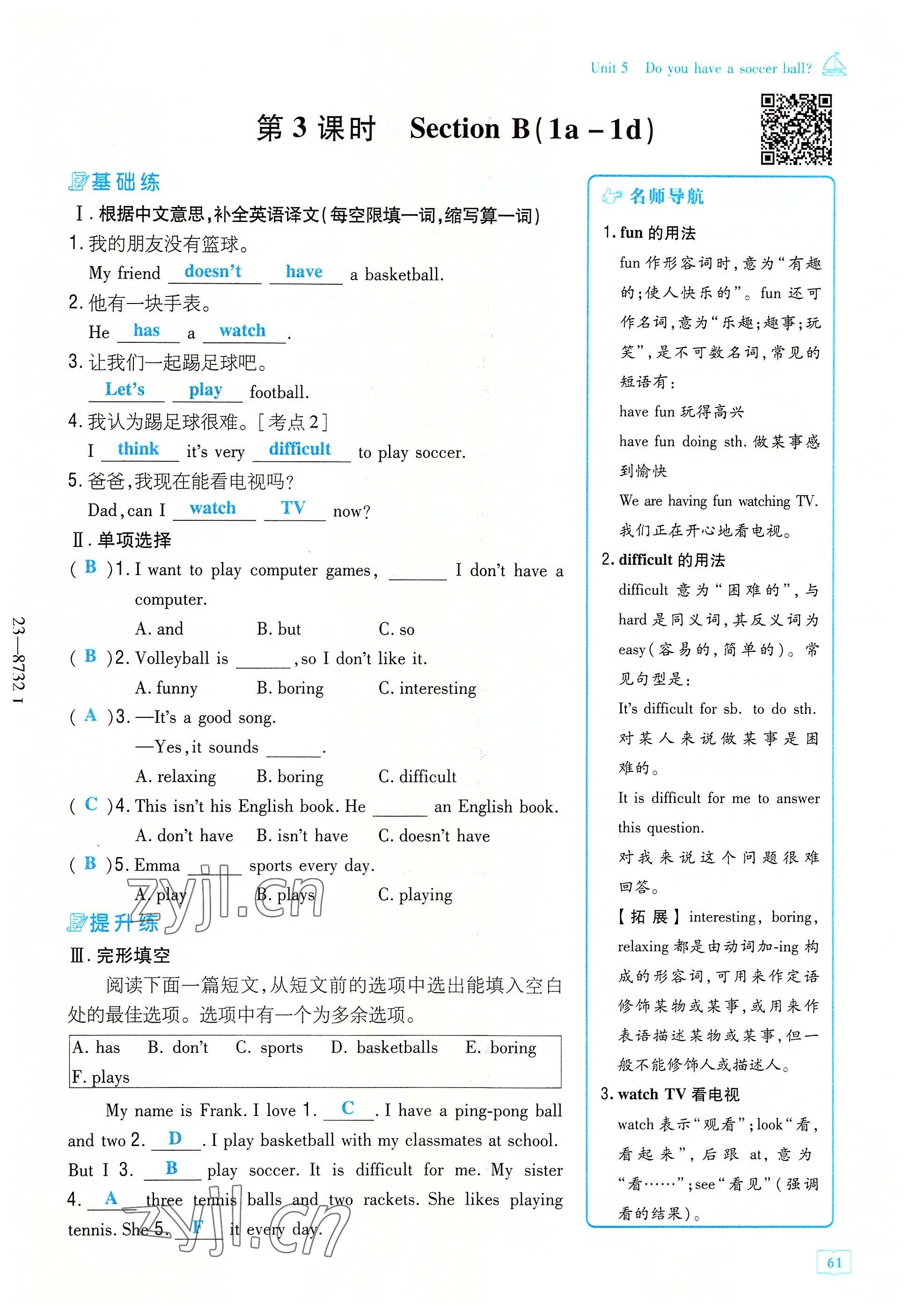 注:目前有些书本章节名称可能整理的还不是很完善,但都是按照顺序排列的,请同学们按照顺序仔细查找。练习册 2022年导与练七年级英语上册人教版贵阳专版 答案主要是用来给同学们做完题方便对答案用的,请勿直接抄袭。