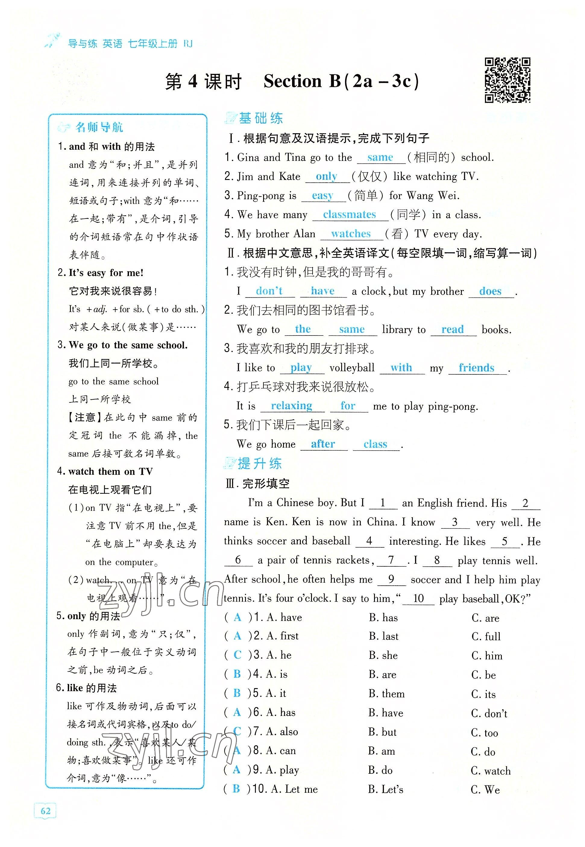 注:目前有些书本章节名称可能整理的还不是很完善,但都是按照顺序排列的,请同学们按照顺序仔细查找。练习册 2022年导与练七年级英语上册人教版贵阳专版 答案主要是用来给同学们做完题方便对答案用的,请勿直接抄袭。