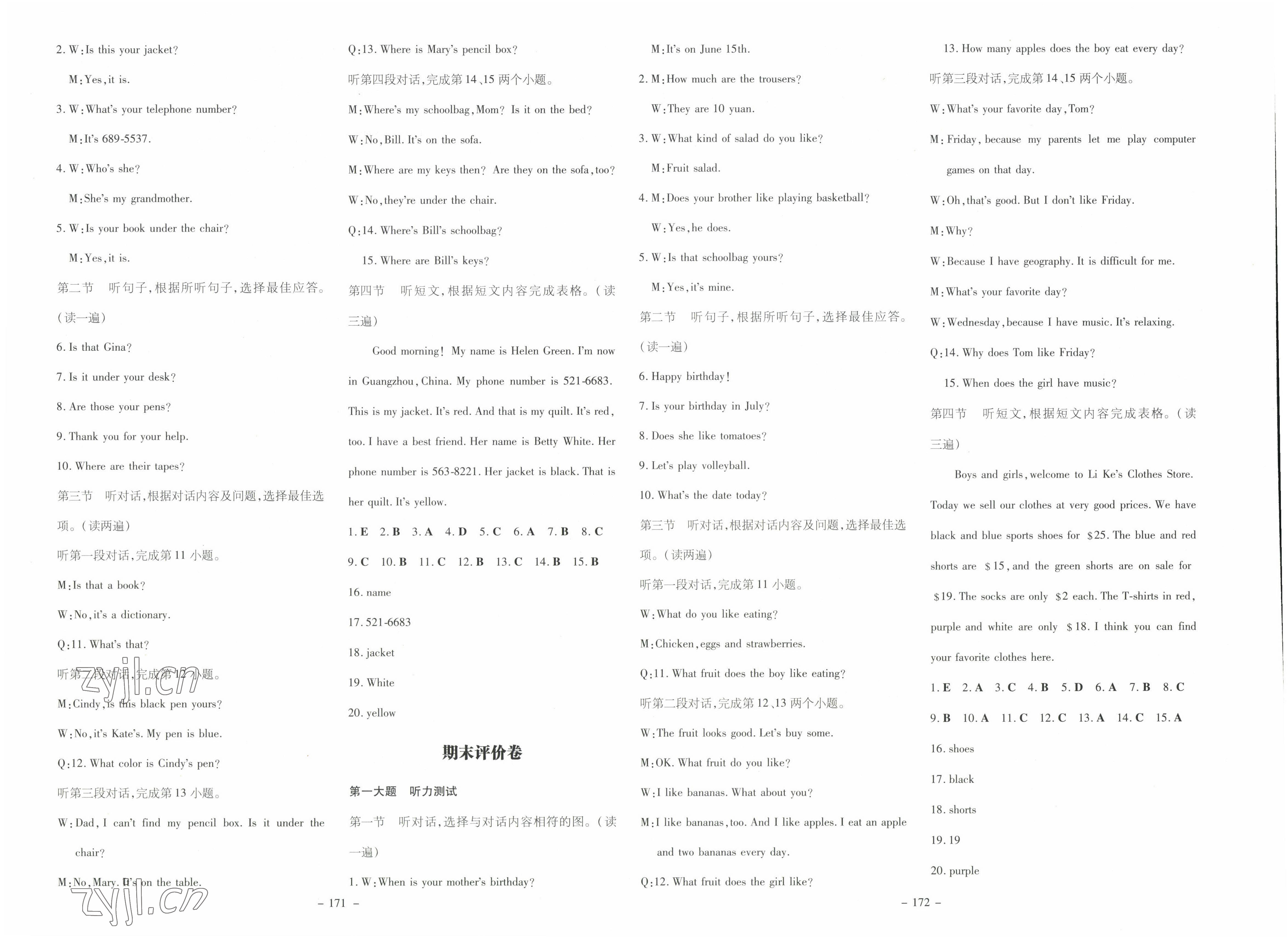 《2022年导与练七年级英语上册人教版贵阳专版》