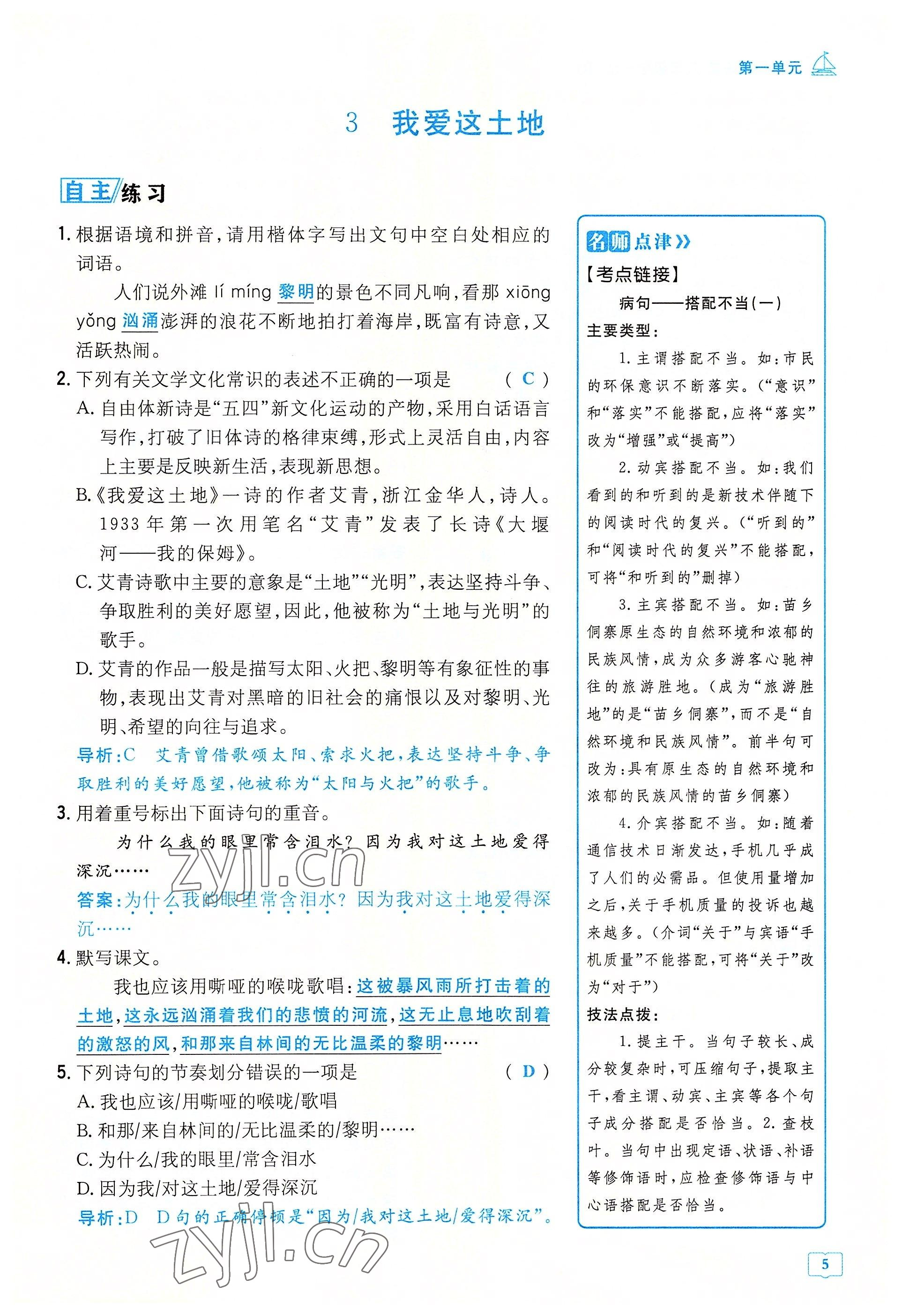 注:目前有些书本章节名称可能整理的还不是很完善,但都是按照顺序排列的,请同学们按照顺序仔细查找。练习册 2022年导与练九年级语文全一册人教版贵阳专版 答案主要是用来给同学们做完题方便对答案用的,请勿直接抄袭。