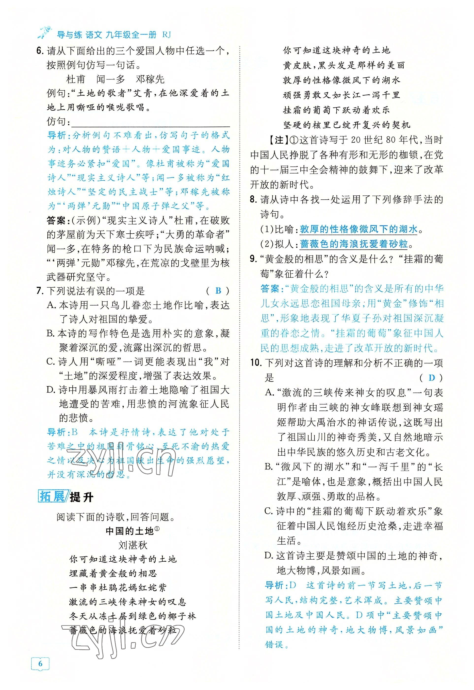 注:目前有些书本章节名称可能整理的还不是很完善,但都是按照顺序排列的,请同学们按照顺序仔细查找。练习册 2022年导与练九年级语文全一册人教版贵阳专版 答案主要是用来给同学们做完题方便对答案用的,请勿直接抄袭。