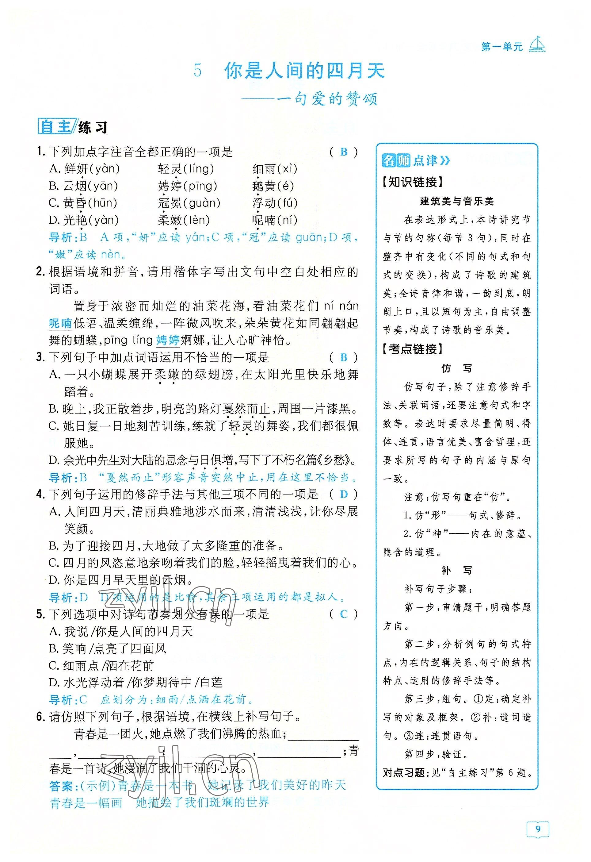注:目前有些书本章节名称可能整理的还不是很完善,但都是按照顺序排列的,请同学们按照顺序仔细查找。练习册 2022年导与练九年级语文全一册人教版贵阳专版 答案主要是用来给同学们做完题方便对答案用的,请勿直接抄袭。