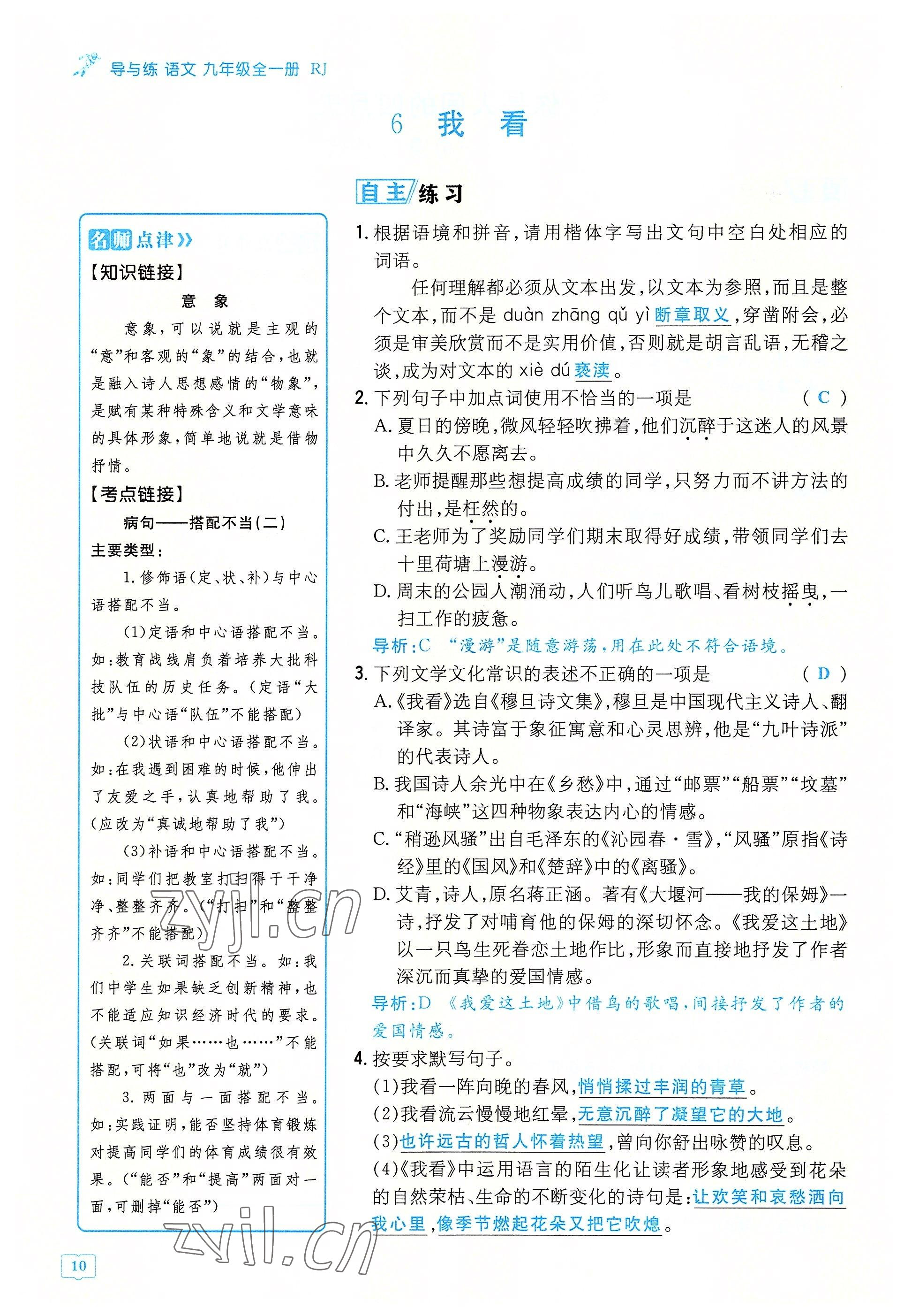 注:目前有些书本章节名称可能整理的还不是很完善,但都是按照顺序排列的,请同学们按照顺序仔细查找。练习册 2022年导与练九年级语文全一册人教版贵阳专版 答案主要是用来给同学们做完题方便对答案用的,请勿直接抄袭。