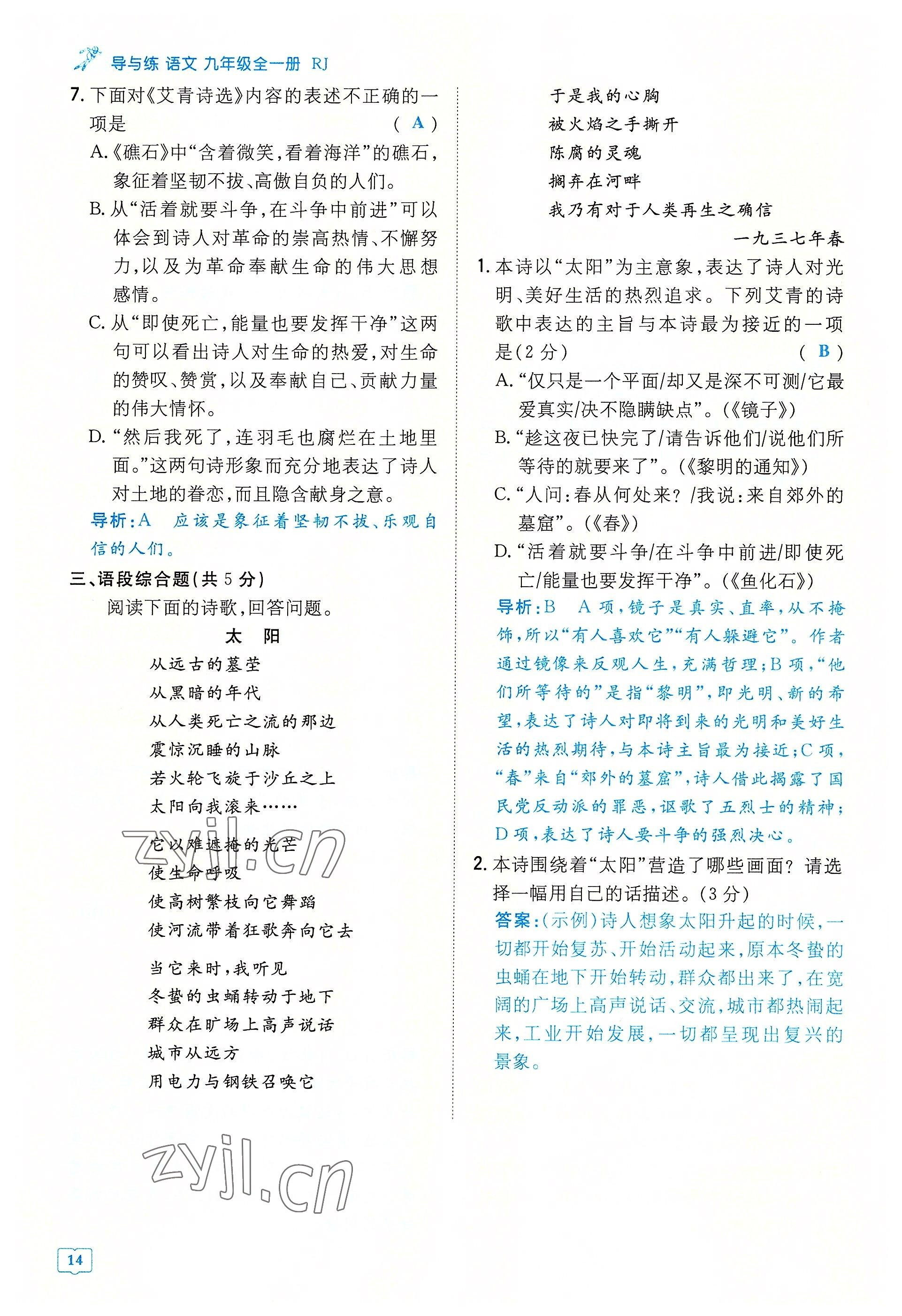 注:目前有些书本章节名称可能整理的还不是很完善,但都是按照顺序排列的,请同学们按照顺序仔细查找。练习册 2022年导与练九年级语文全一册人教版贵阳专版 答案主要是用来给同学们做完题方便对答案用的,请勿直接抄袭。