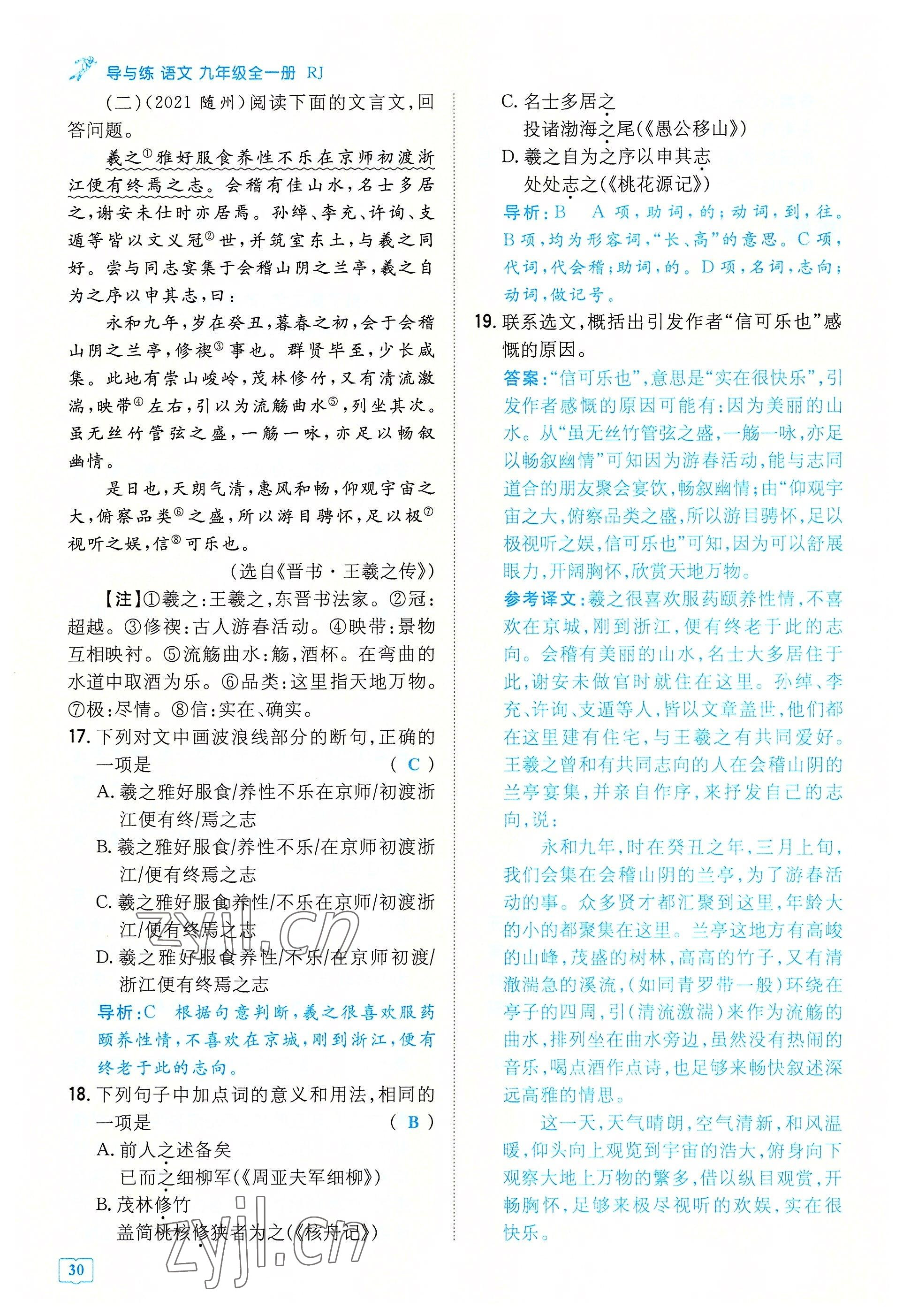 注:目前有些书本章节名称可能整理的还不是很完善,但都是按照顺序排列的,请同学们按照顺序仔细查找。练习册 2022年导与练九年级语文全一册人教版贵阳专版 答案主要是用来给同学们做完题方便对答案用的,请勿直接抄袭。