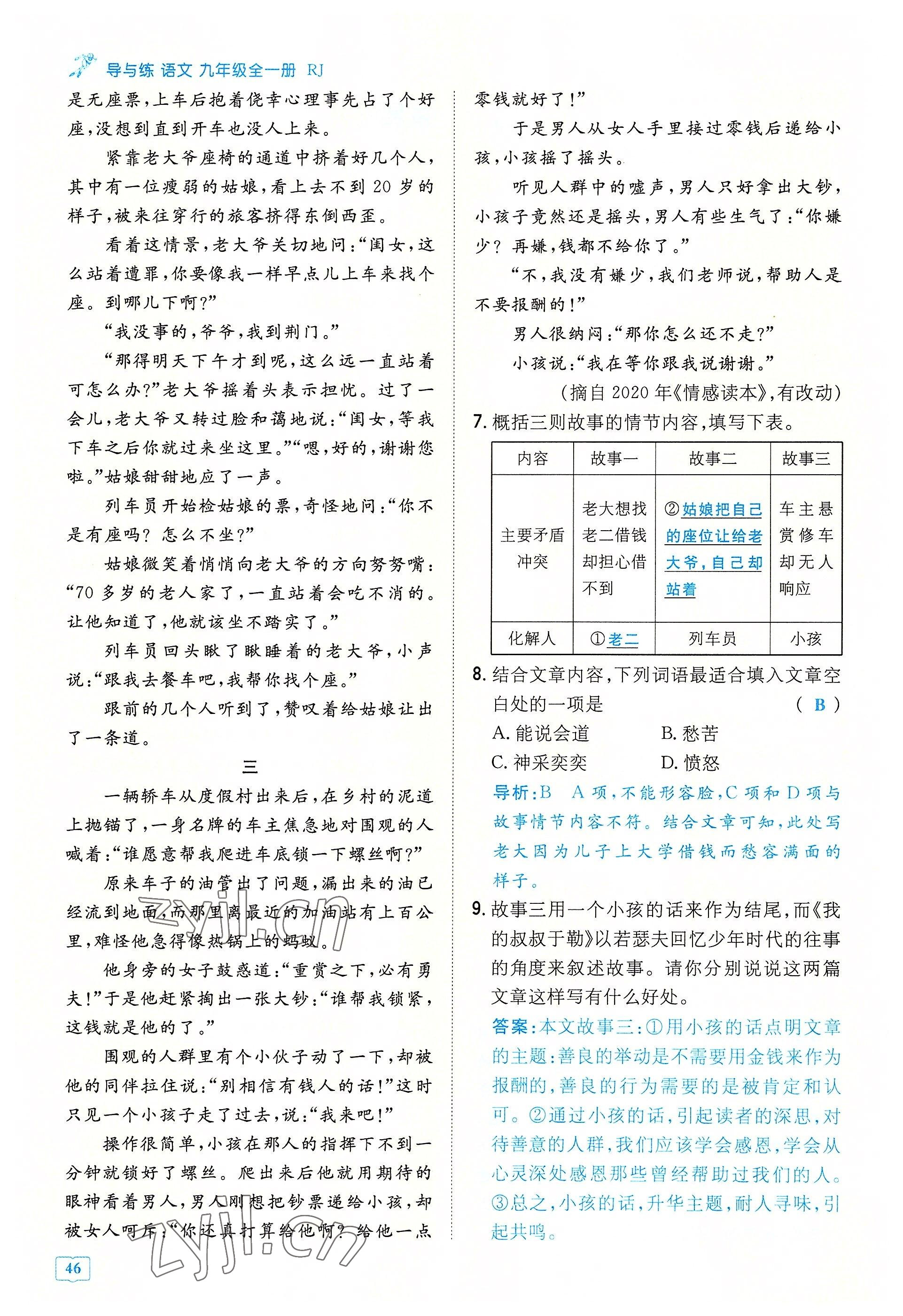 注:目前有些书本章节名称可能整理的还不是很完善,但都是按照顺序排列的,请同学们按照顺序仔细查找。练习册 2022年导与练九年级语文全一册人教版贵阳专版 答案主要是用来给同学们做完题方便对答案用的,请勿直接抄袭。