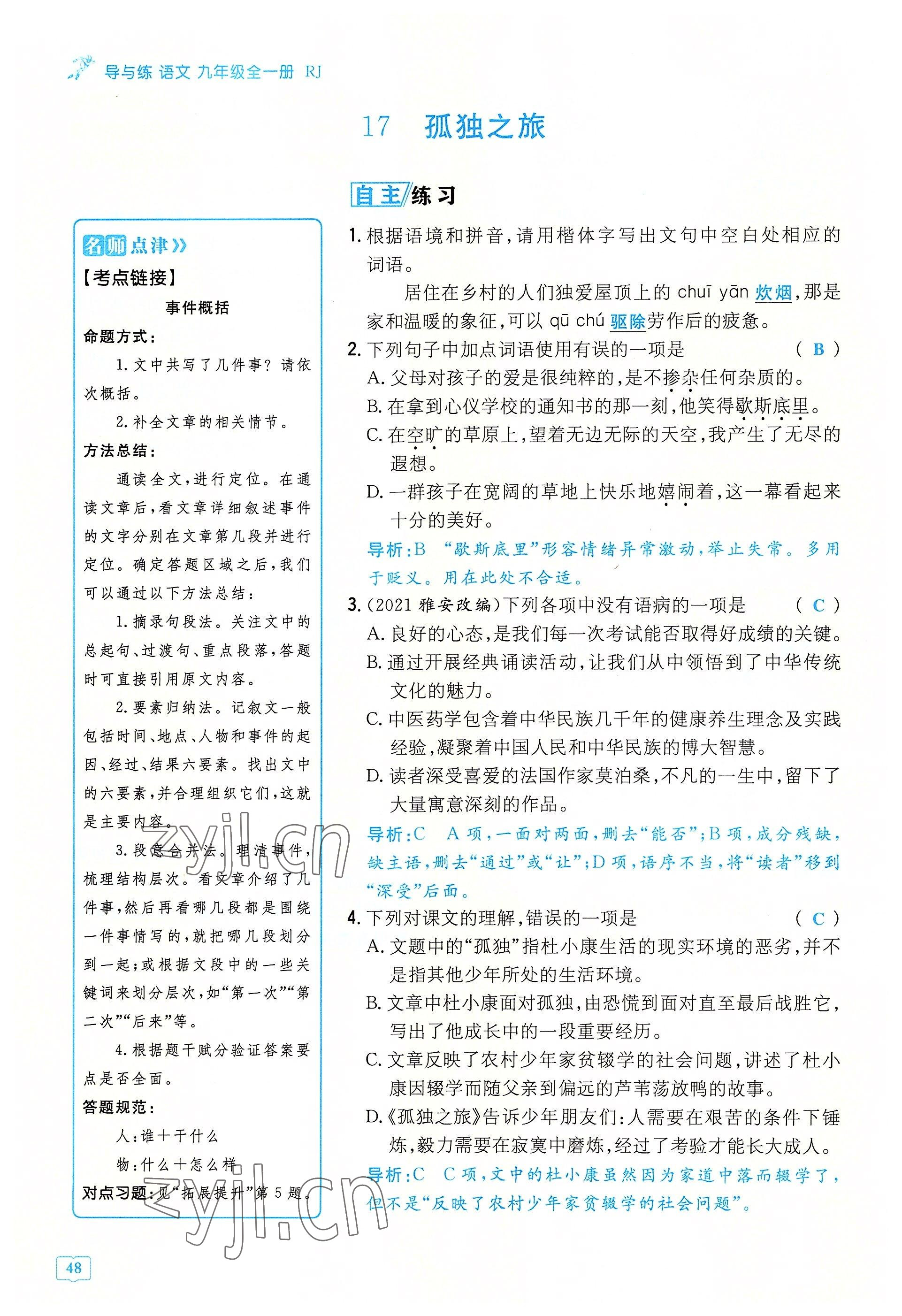 注:目前有些书本章节名称可能整理的还不是很完善,但都是按照顺序排列的,请同学们按照顺序仔细查找。练习册 2022年导与练九年级语文全一册人教版贵阳专版 答案主要是用来给同学们做完题方便对答案用的,请勿直接抄袭。