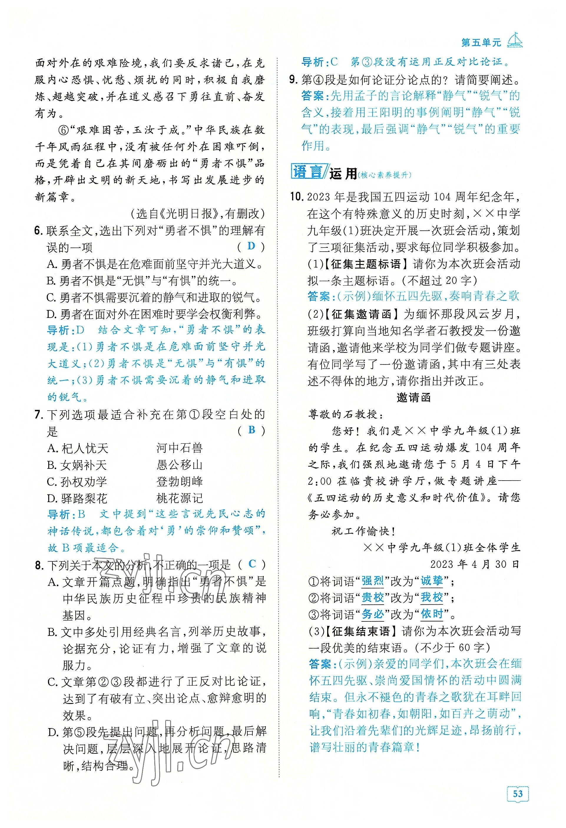 注:目前有些书本章节名称可能整理的还不是很完善,但都是按照顺序排列的,请同学们按照顺序仔细查找。练习册 2022年导与练九年级语文全一册人教版贵阳专版 答案主要是用来给同学们做完题方便对答案用的,请勿直接抄袭。