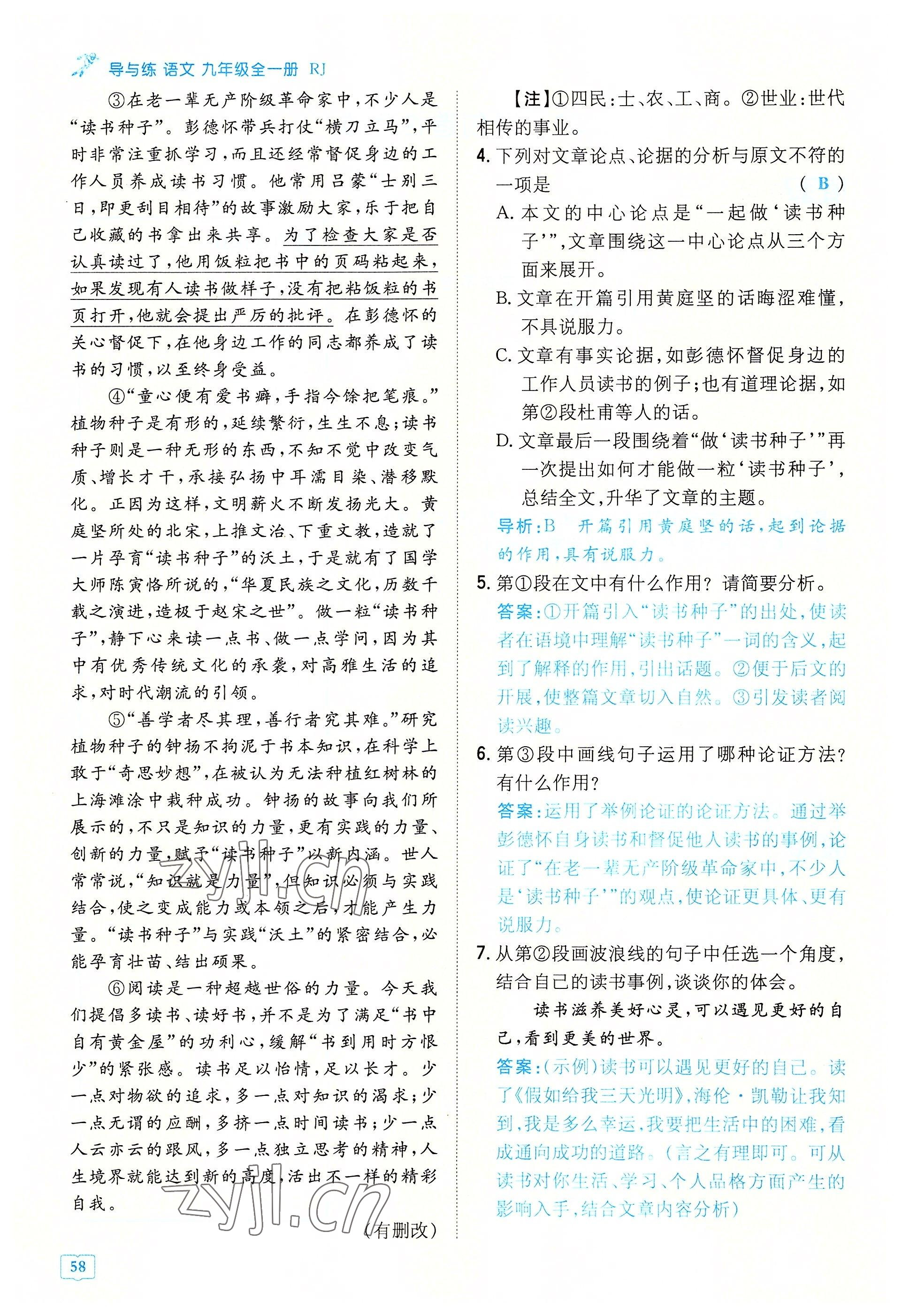 注:目前有些书本章节名称可能整理的还不是很完善,但都是按照顺序排列的,请同学们按照顺序仔细查找。练习册 2022年导与练九年级语文全一册人教版贵阳专版 答案主要是用来给同学们做完题方便对答案用的,请勿直接抄袭。