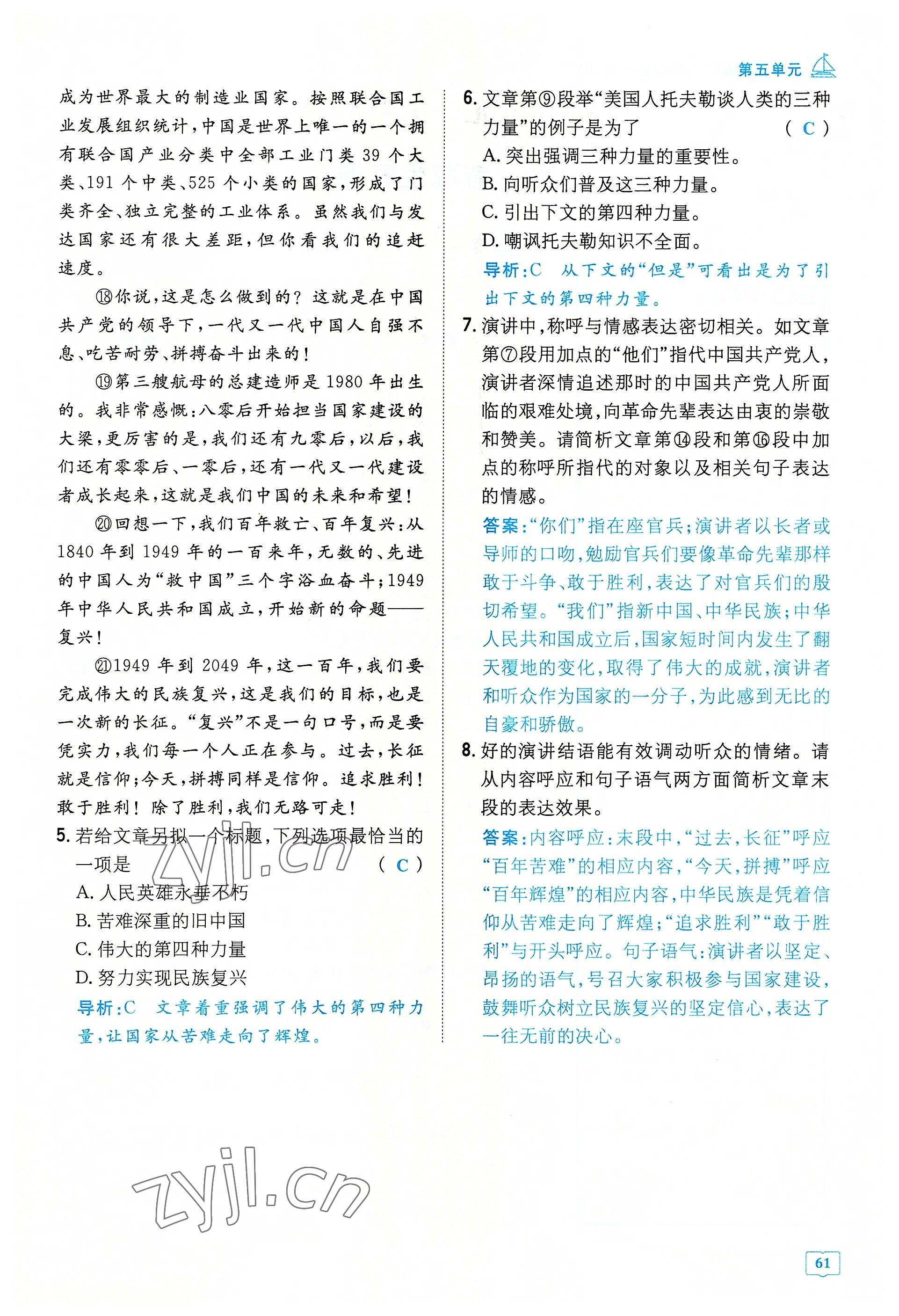 注:目前有些书本章节名称可能整理的还不是很完善,但都是按照顺序排列的,请同学们按照顺序仔细查找。练习册 2022年导与练九年级语文全一册人教版贵阳专版 答案主要是用来给同学们做完题方便对答案用的,请勿直接抄袭。