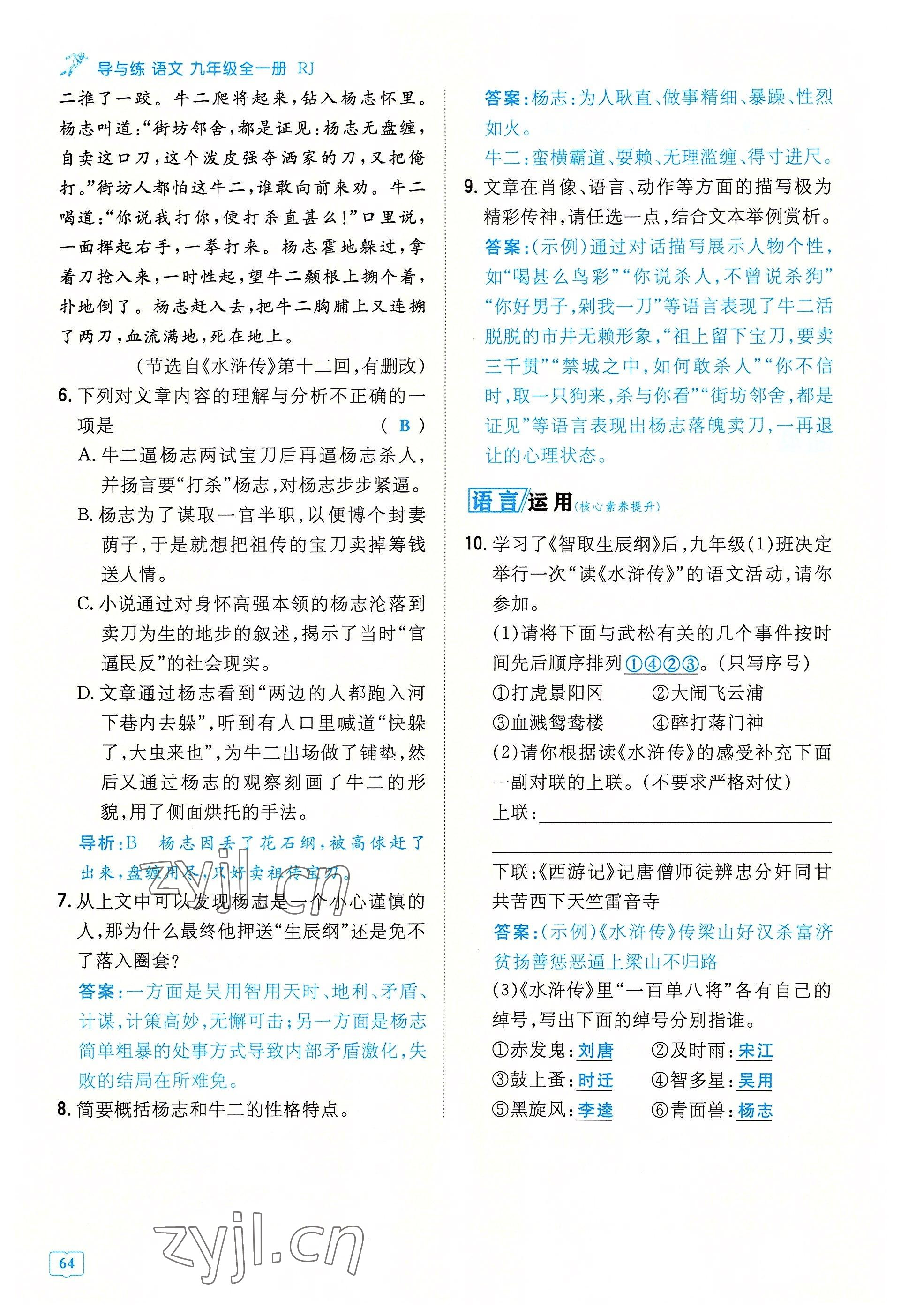 注:目前有些书本章节名称可能整理的还不是很完善,但都是按照顺序排列的,请同学们按照顺序仔细查找。练习册 2022年导与练九年级语文全一册人教版贵阳专版 答案主要是用来给同学们做完题方便对答案用的,请勿直接抄袭。