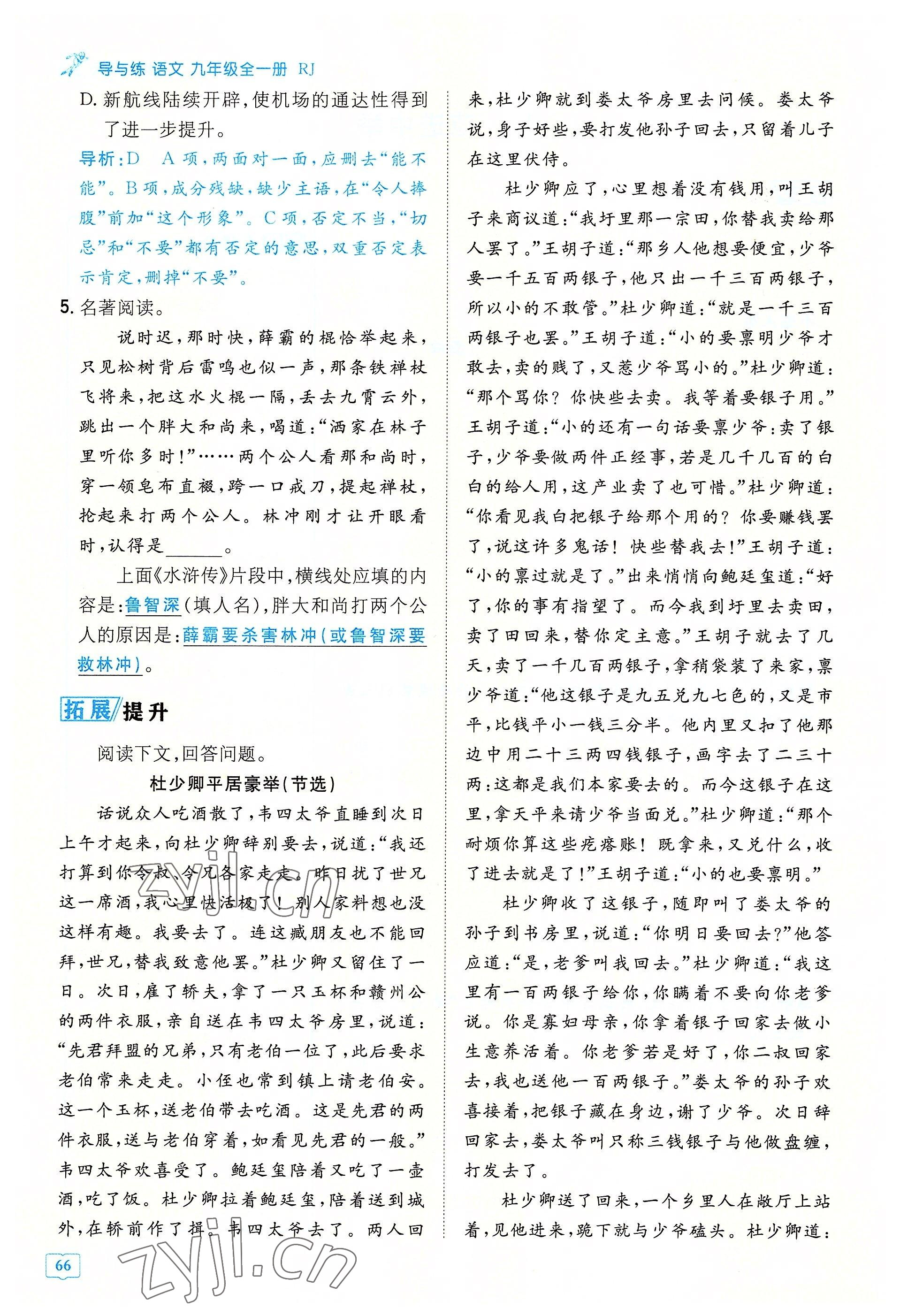 注:目前有些书本章节名称可能整理的还不是很完善,但都是按照顺序排列的,请同学们按照顺序仔细查找。练习册 2022年导与练九年级语文全一册人教版贵阳专版 答案主要是用来给同学们做完题方便对答案用的,请勿直接抄袭。