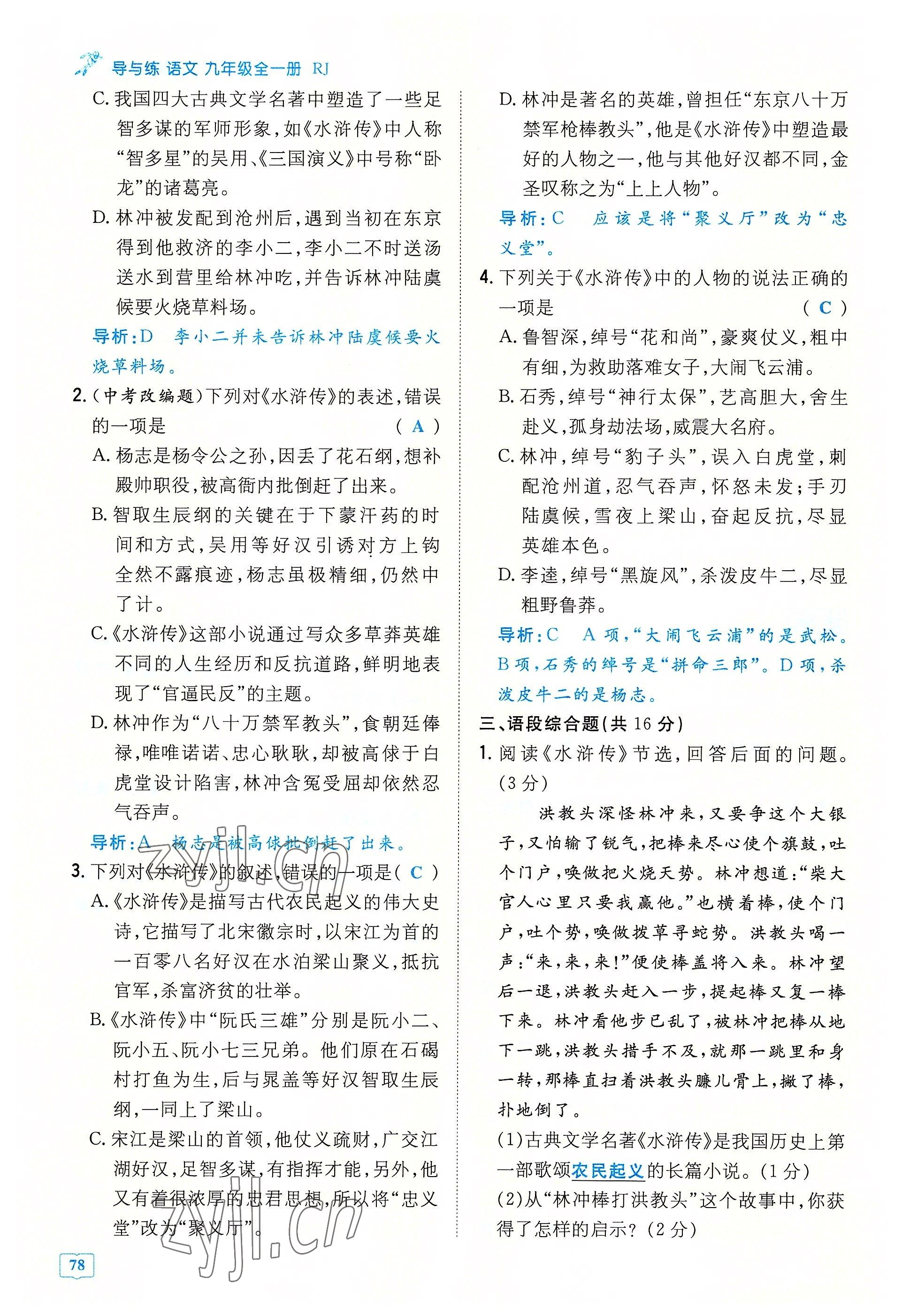 注:目前有些书本章节名称可能整理的还不是很完善,但都是按照顺序排列的,请同学们按照顺序仔细查找。练习册 2022年导与练九年级语文全一册人教版贵阳专版 答案主要是用来给同学们做完题方便对答案用的,请勿直接抄袭。
