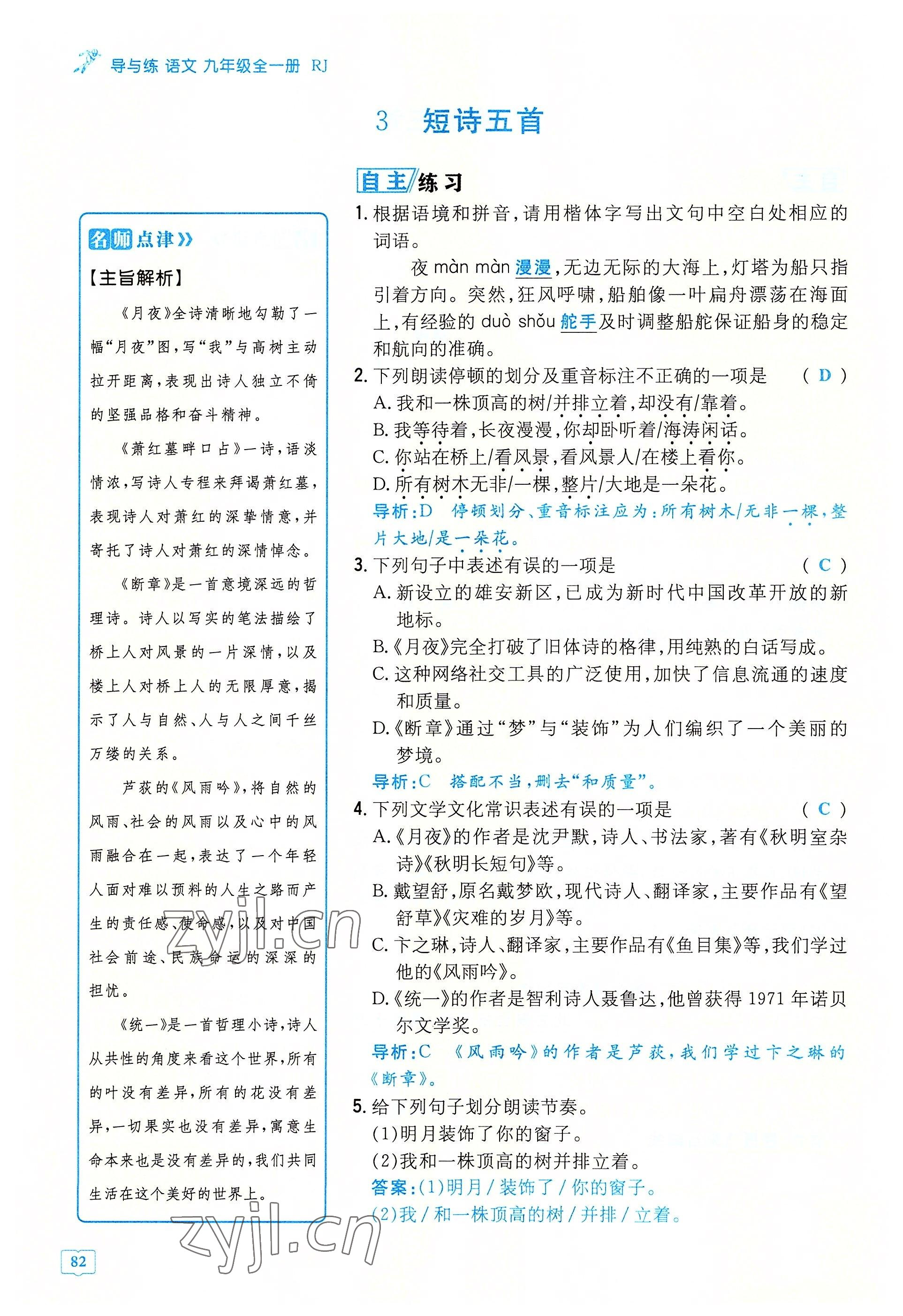 注:目前有些书本章节名称可能整理的还不是很完善,但都是按照顺序排列的,请同学们按照顺序仔细查找。练习册 2022年导与练九年级语文全一册人教版贵阳专版 答案主要是用来给同学们做完题方便对答案用的,请勿直接抄袭。