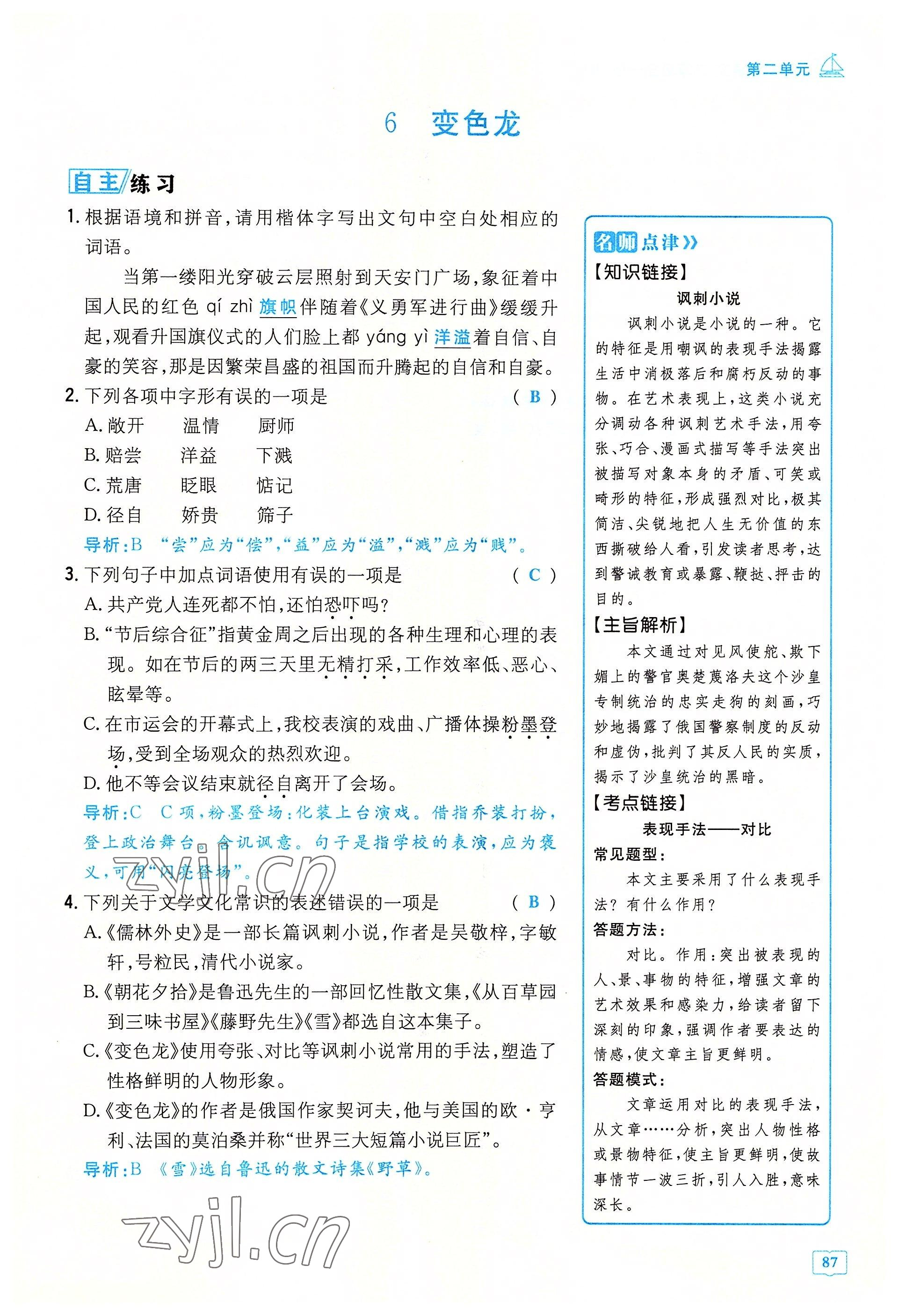 注:目前有些书本章节名称可能整理的还不是很完善,但都是按照顺序排列的,请同学们按照顺序仔细查找。练习册 2022年导与练九年级语文全一册人教版贵阳专版 答案主要是用来给同学们做完题方便对答案用的,请勿直接抄袭。