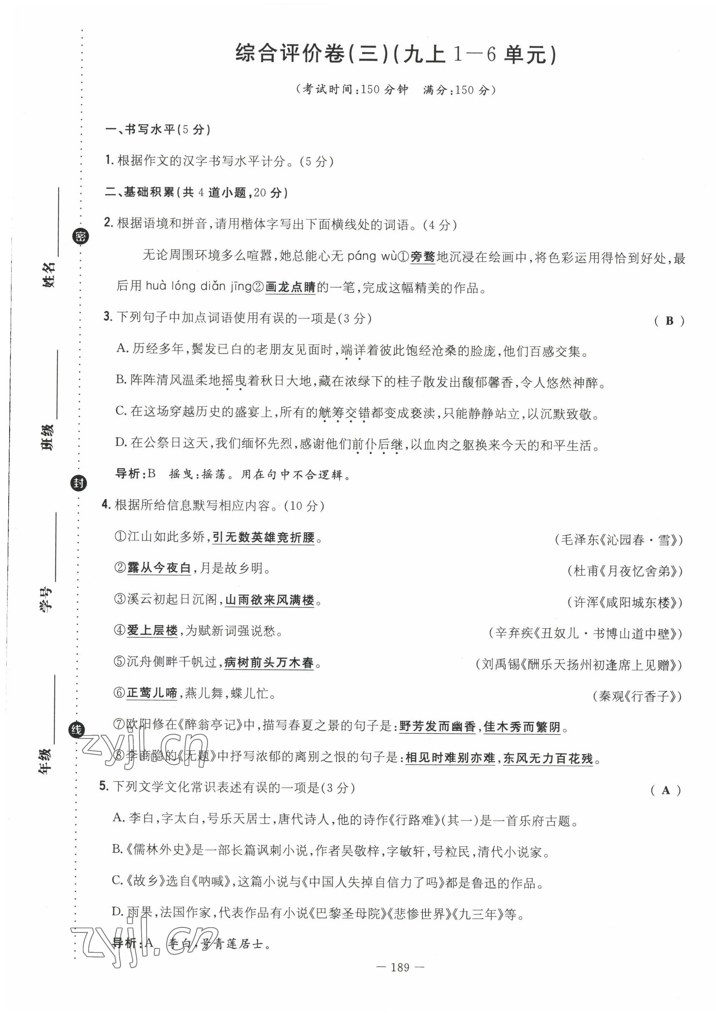 注:目前有些书本章节名称可能整理的还不是很完善,但都是按照顺序排列的,请同学们按照顺序仔细查找。练习册 2022年导与练九年级语文全一册人教版贵阳专版 答案主要是用来给同学们做完题方便对答案用的,请勿直接抄袭。