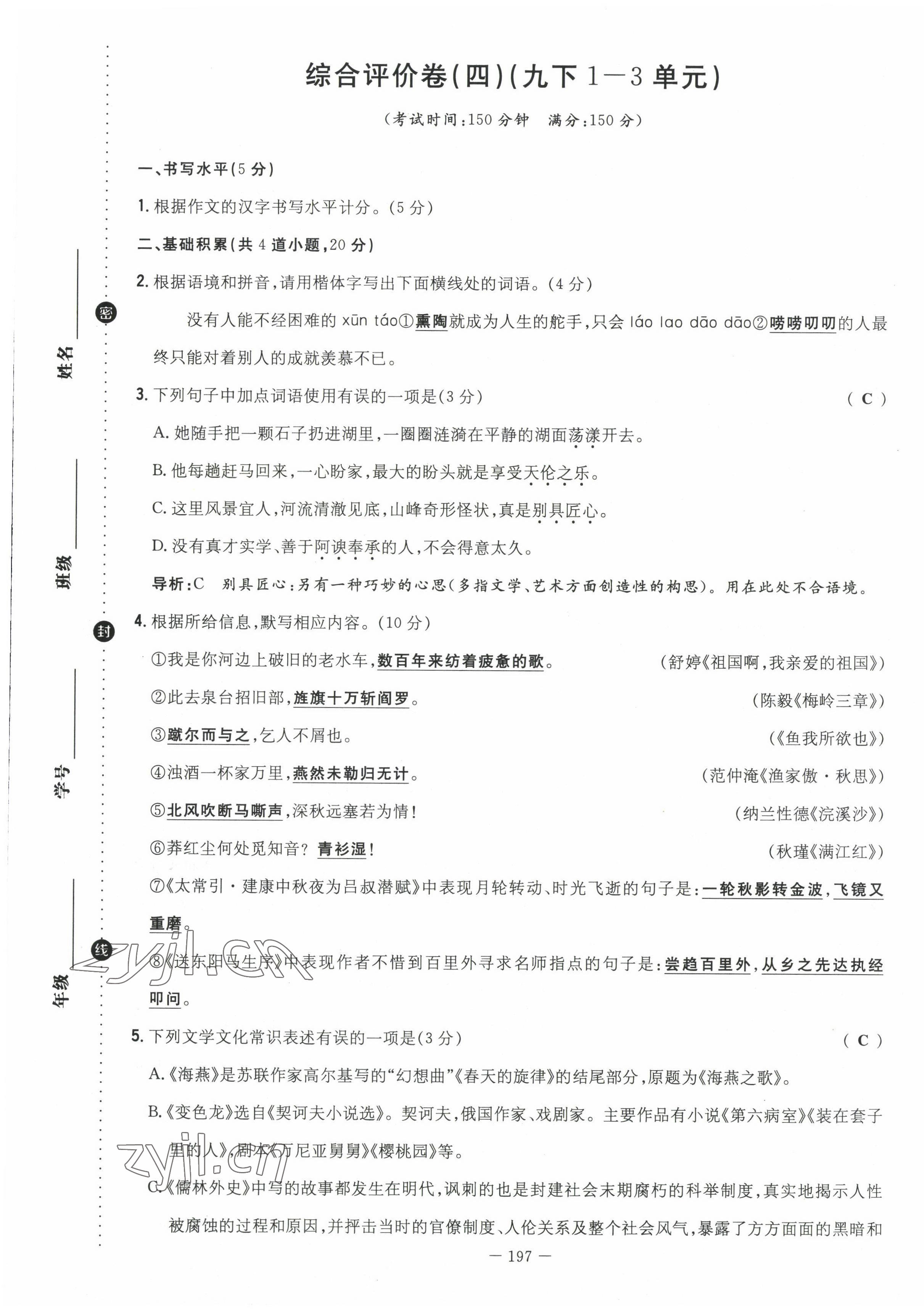 注:目前有些书本章节名称可能整理的还不是很完善,但都是按照顺序排列的,请同学们按照顺序仔细查找。练习册 2022年导与练九年级语文全一册人教版贵阳专版 答案主要是用来给同学们做完题方便对答案用的,请勿直接抄袭。