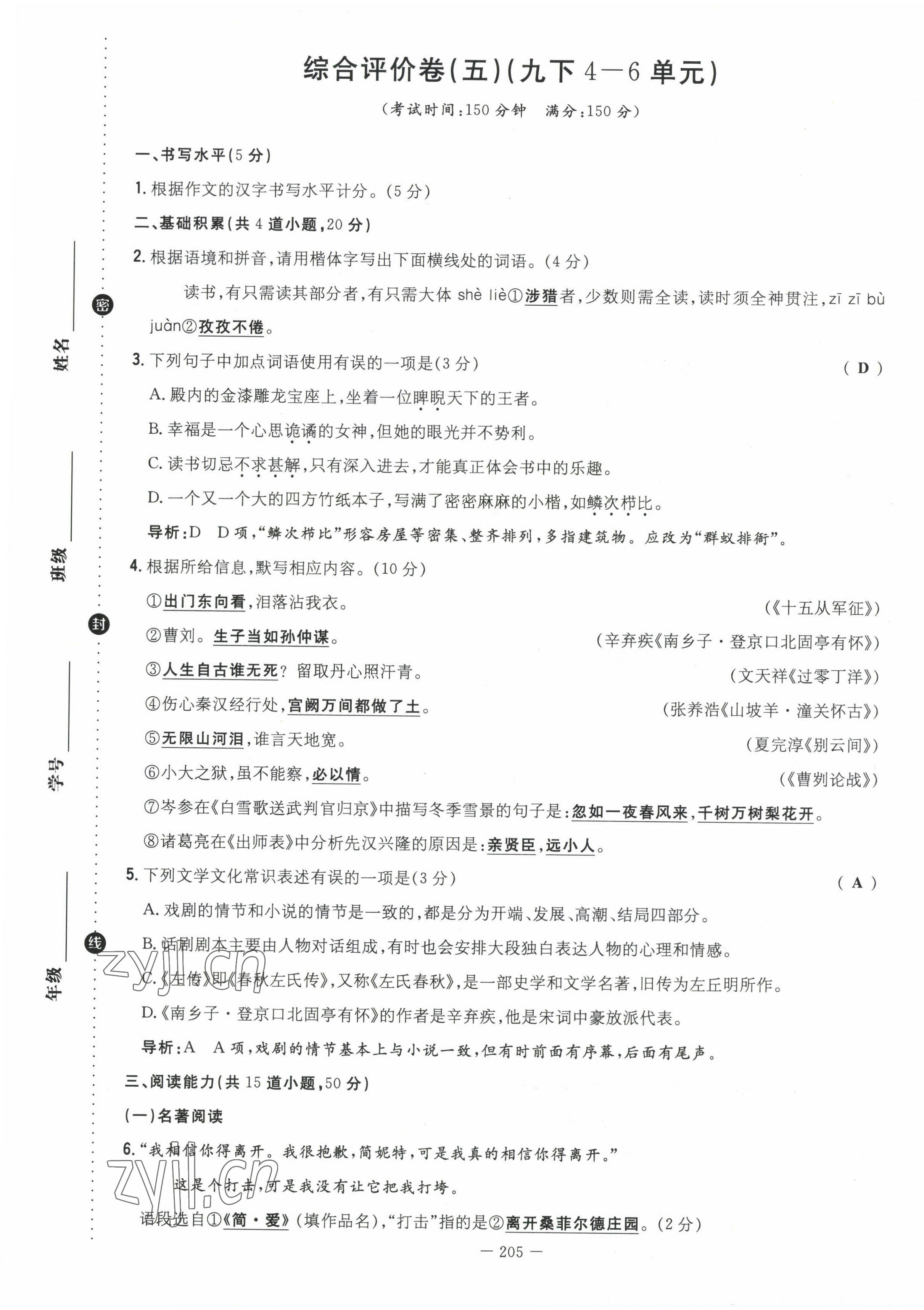 注:目前有些书本章节名称可能整理的还不是很完善,但都是按照顺序排列的,请同学们按照顺序仔细查找。练习册 2022年导与练九年级语文全一册人教版贵阳专版 答案主要是用来给同学们做完题方便对答案用的,请勿直接抄袭。
