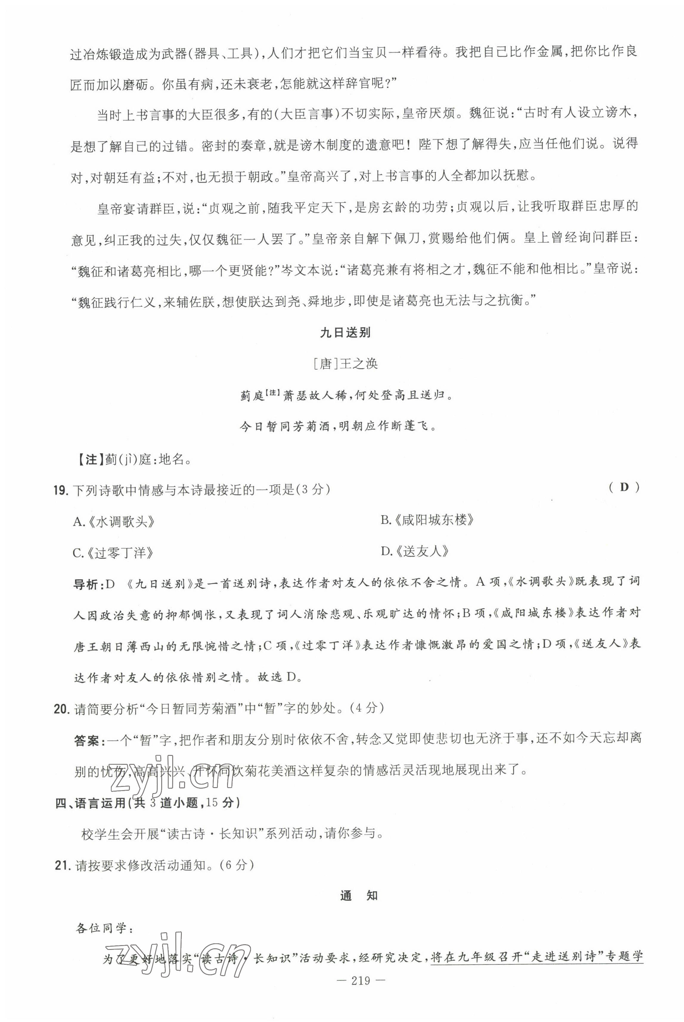 注:目前有些书本章节名称可能整理的还不是很完善,但都是按照顺序排列的,请同学们按照顺序仔细查找。练习册 2022年导与练九年级语文全一册人教版贵阳专版 答案主要是用来给同学们做完题方便对答案用的,请勿直接抄袭。