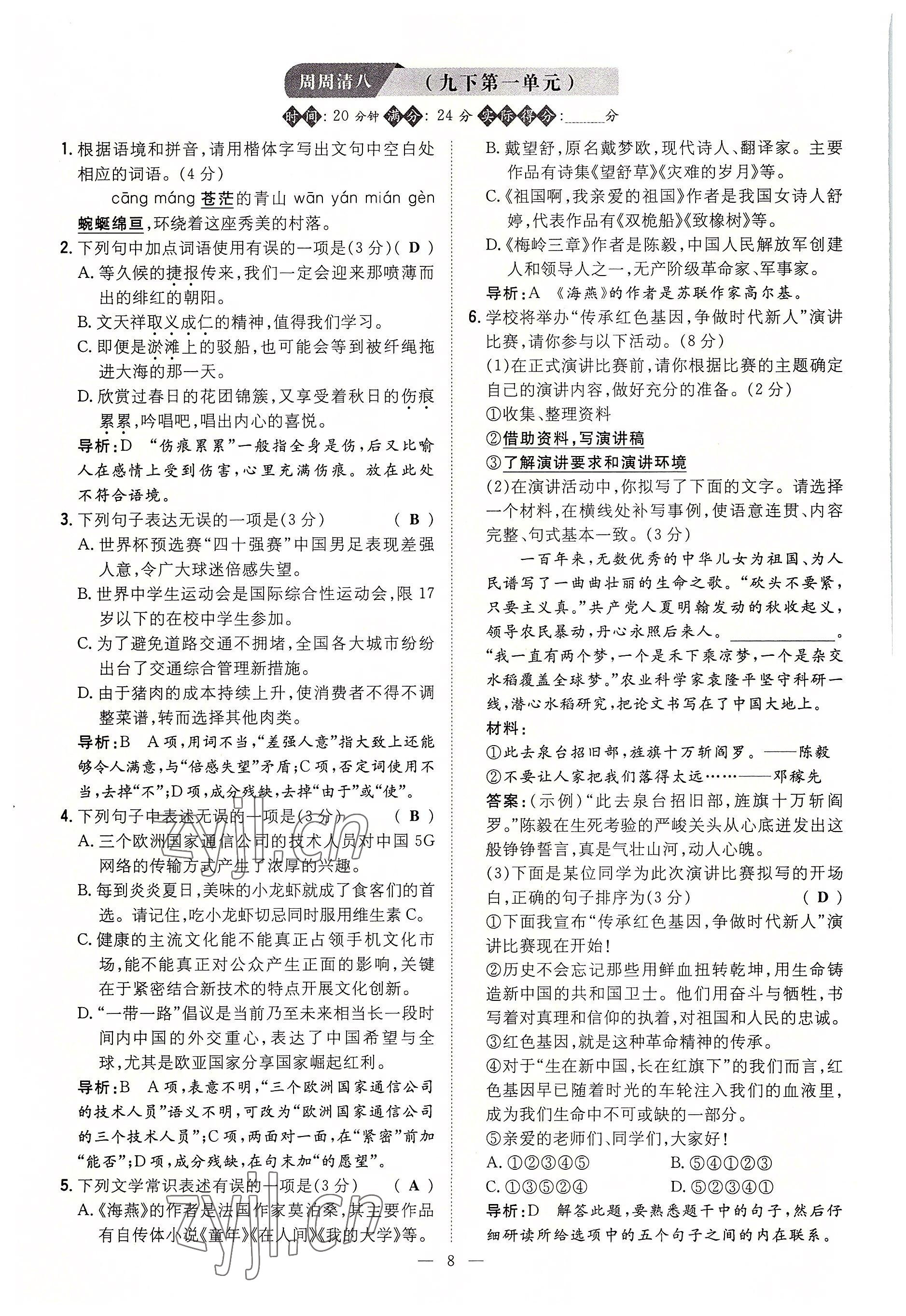 注:目前有些书本章节名称可能整理的还不是很完善,但都是按照顺序排列的,请同学们按照顺序仔细查找。练习册 2022年导与练九年级语文全一册人教版贵阳专版 答案主要是用来给同学们做完题方便对答案用的,请勿直接抄袭。