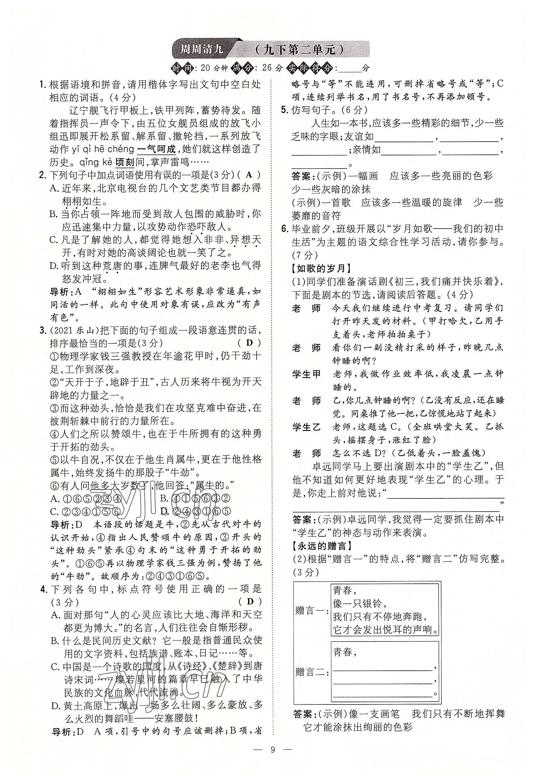 注:目前有些书本章节名称可能整理的还不是很完善,但都是按照顺序排列的,请同学们按照顺序仔细查找。练习册 2022年导与练九年级语文全一册人教版贵阳专版 答案主要是用来给同学们做完题方便对答案用的,请勿直接抄袭。