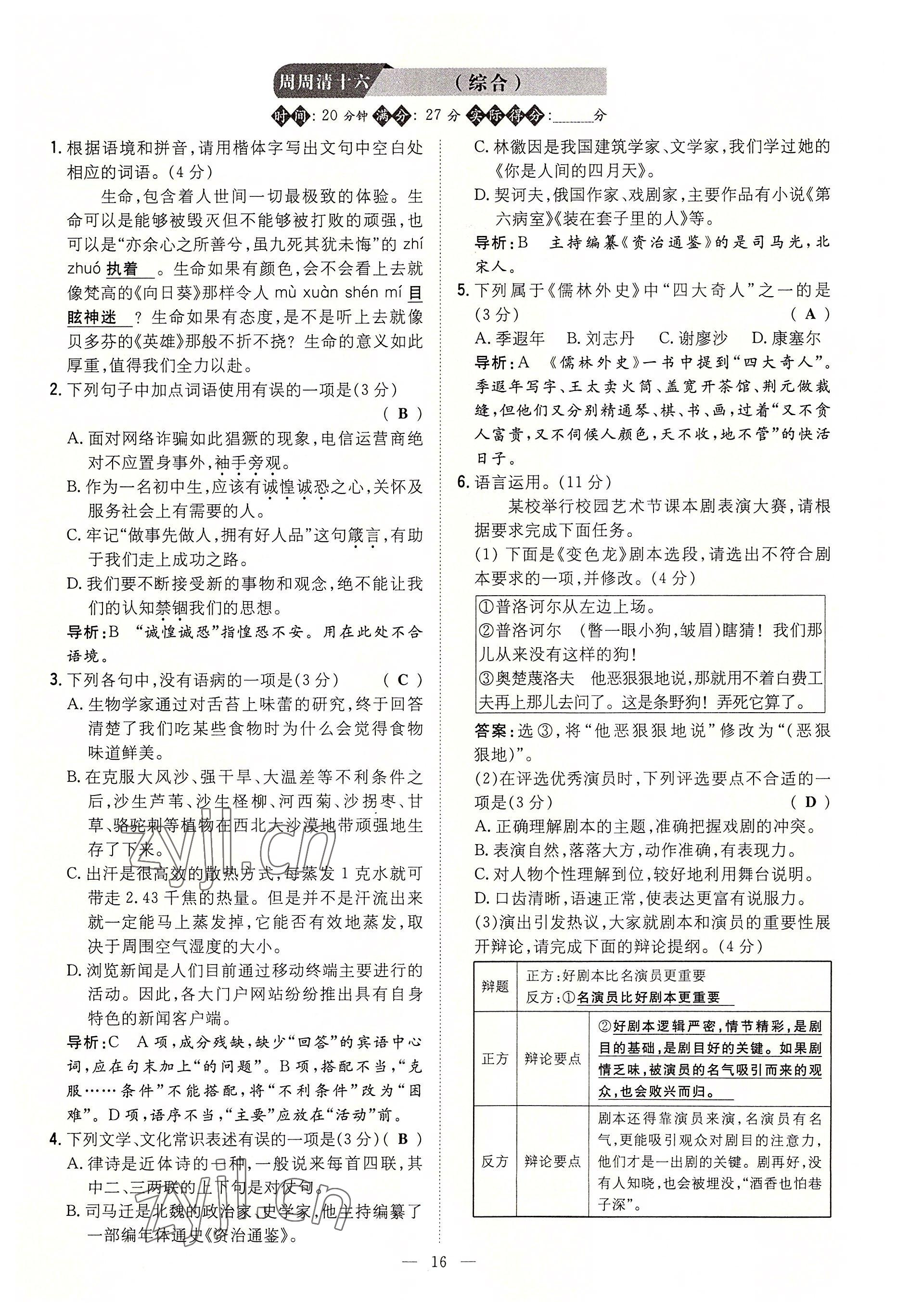 注:目前有些书本章节名称可能整理的还不是很完善,但都是按照顺序排列的,请同学们按照顺序仔细查找。练习册 2022年导与练九年级语文全一册人教版贵阳专版 答案主要是用来给同学们做完题方便对答案用的,请勿直接抄袭。