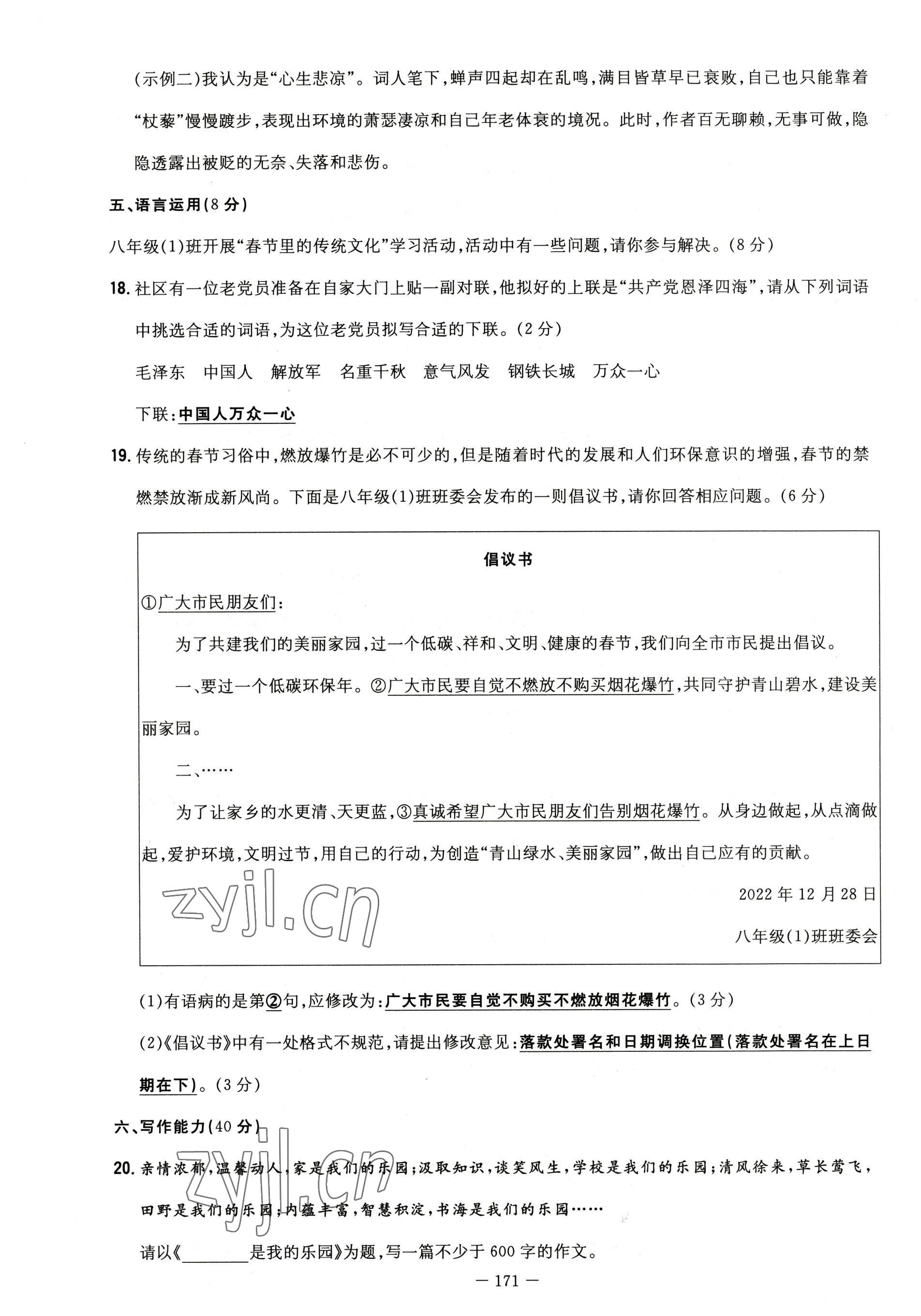 - 参考答案第171页