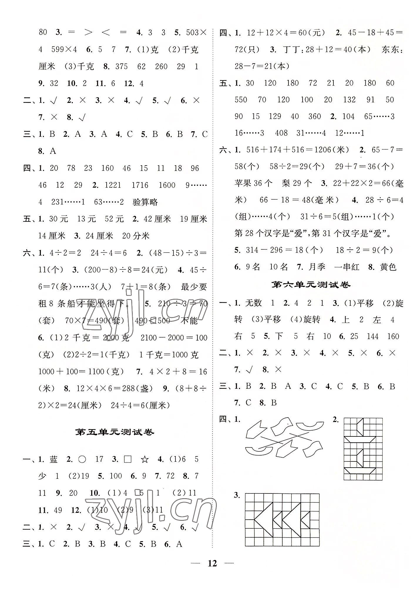 注:目前有些书本章节名称可能整理的还不是很完善,但都是按照顺序排列的,请同学们按照顺序仔细查找。练习册 2022年随堂练1加2三年级数学上册苏教版 答案主要是用来给同学们做完题方便对答案用的,请勿直接抄袭。