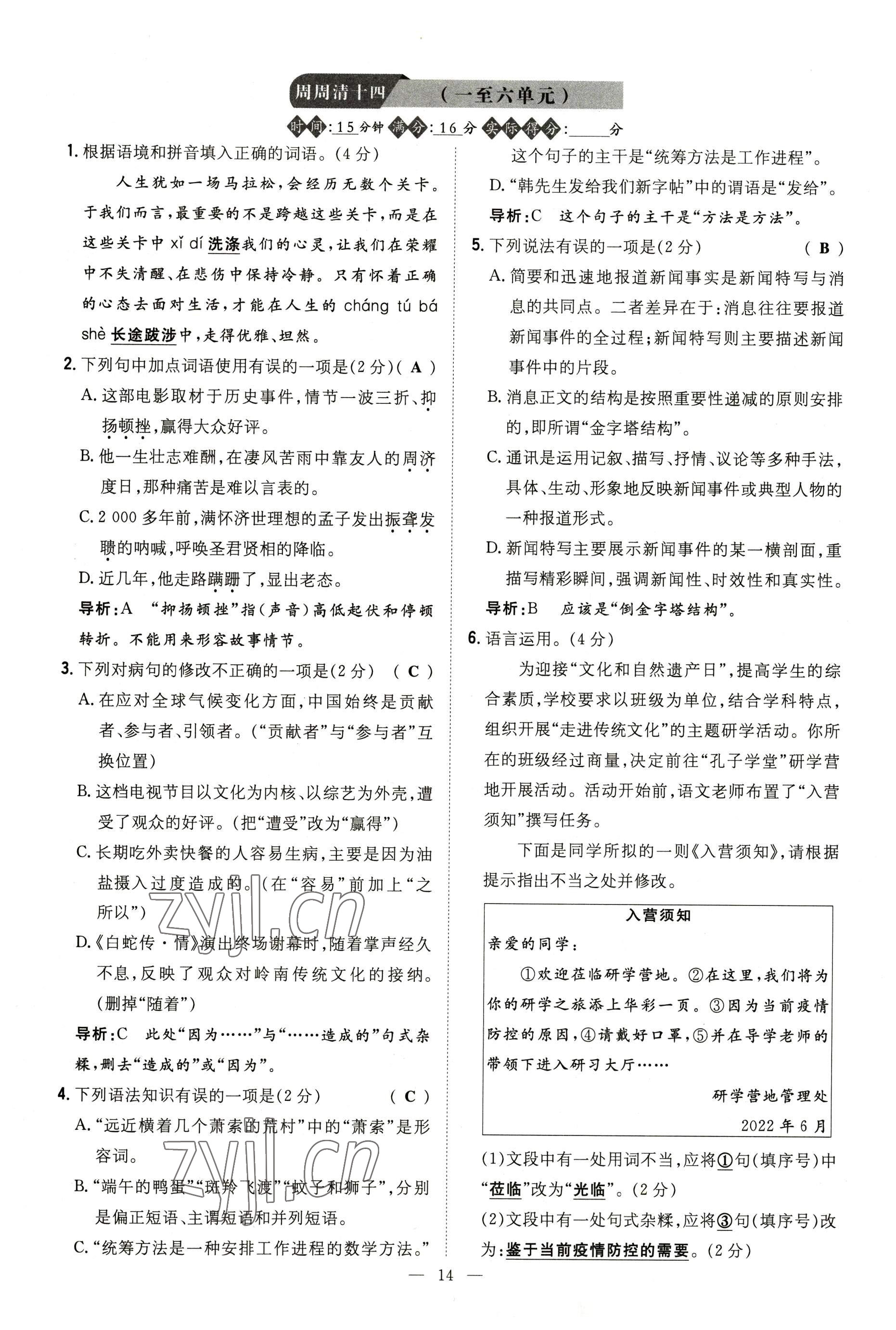 - 参考答案第14页