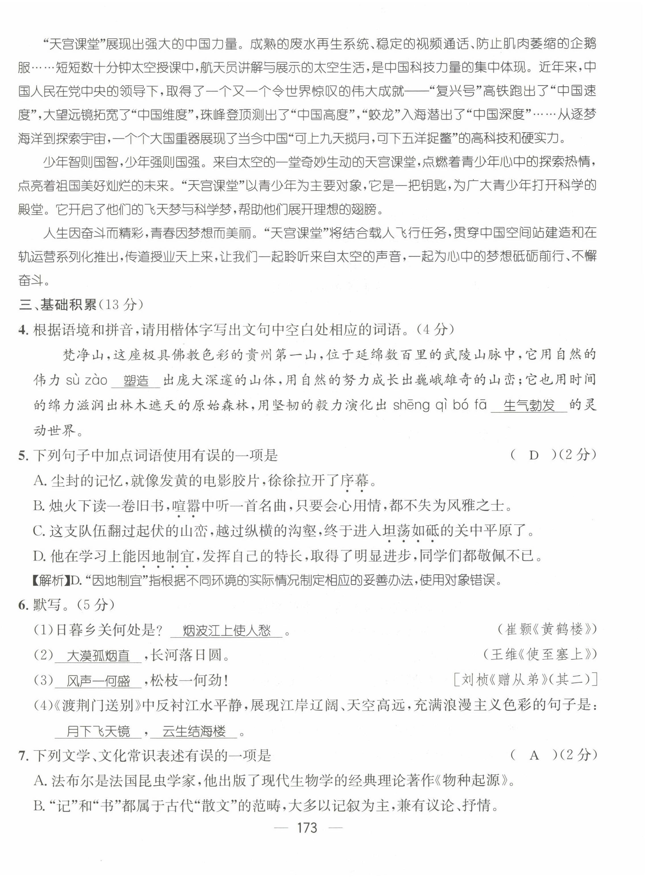 - 参考答案第173页