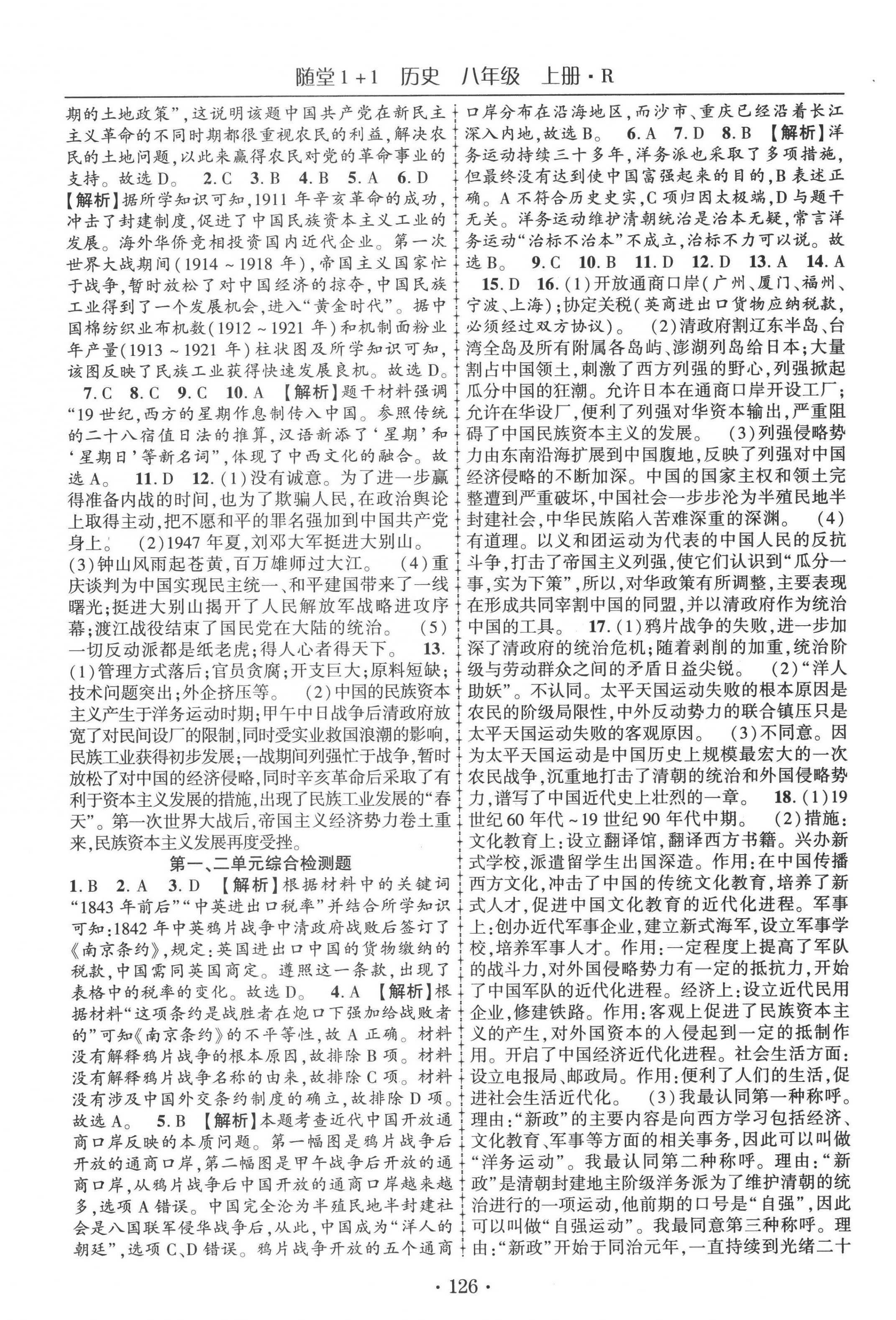 注:目前有些书本章节名称可能整理的还不是很完善,但都是按照顺序排列的,请同学们按照顺序仔细查找。练习册 2022年随堂1加1导练八年级历史上册人教版 答案主要是用来给同学们做完题方便对答案用的,请勿直接抄袭。