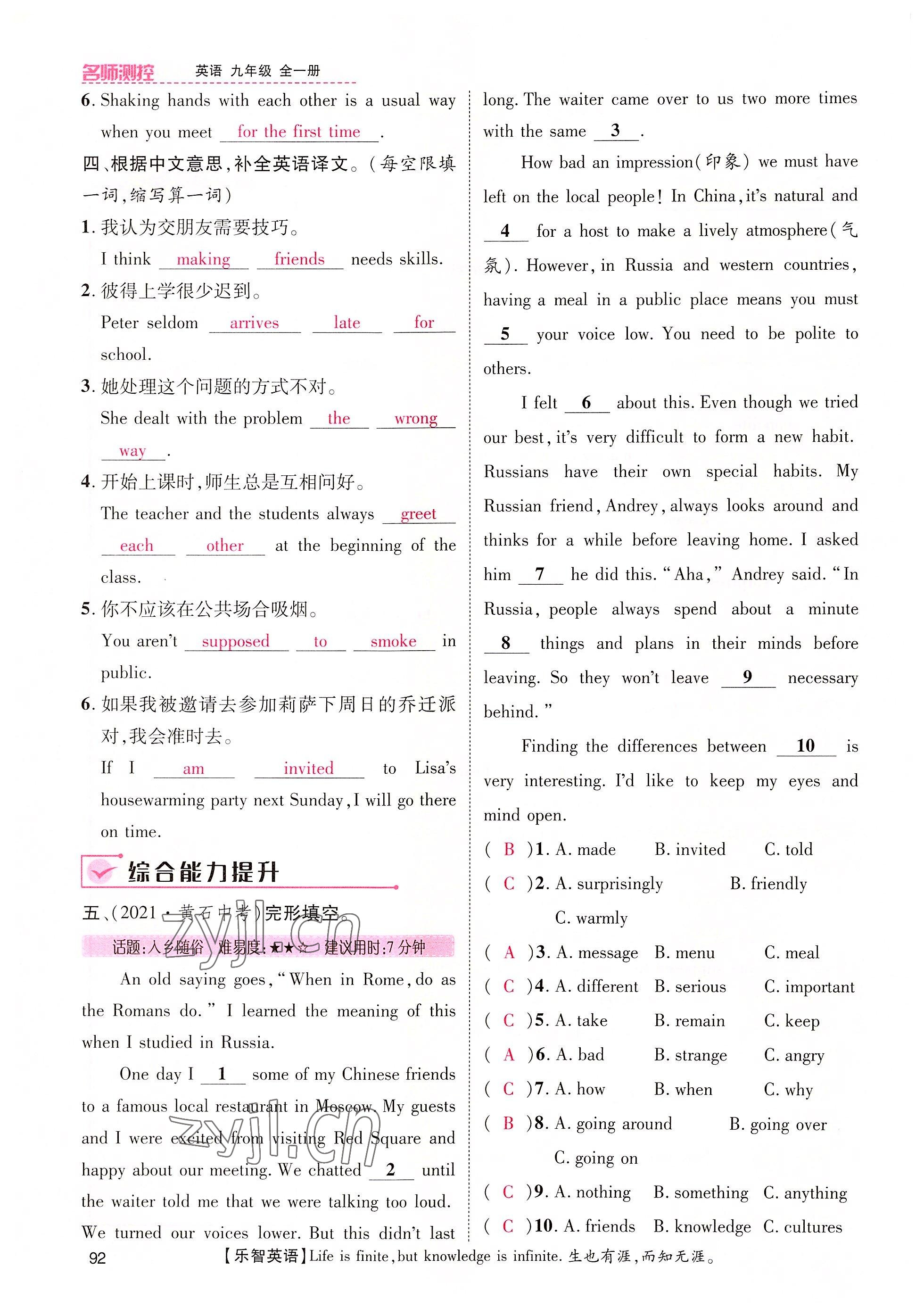 - 参考答案第92页