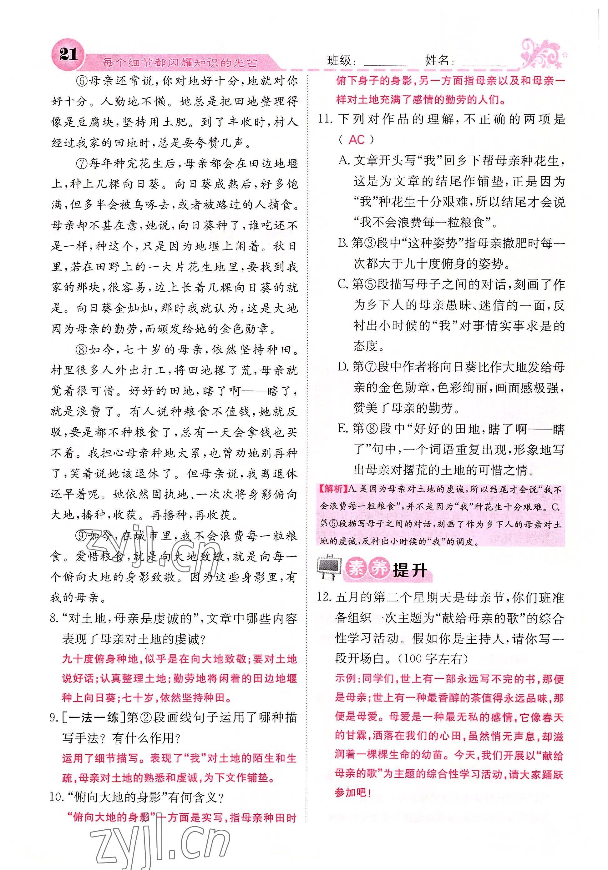 注:目前有些书本章节名称可能整理的还不是很完善,但都是按照顺序排列的,请同学们按照顺序仔细查找。练习册 2022年课堂点睛七年级语文上册人教版四川专版 答案主要是用来给同学们做完题方便对答案用的,请勿直接抄袭。