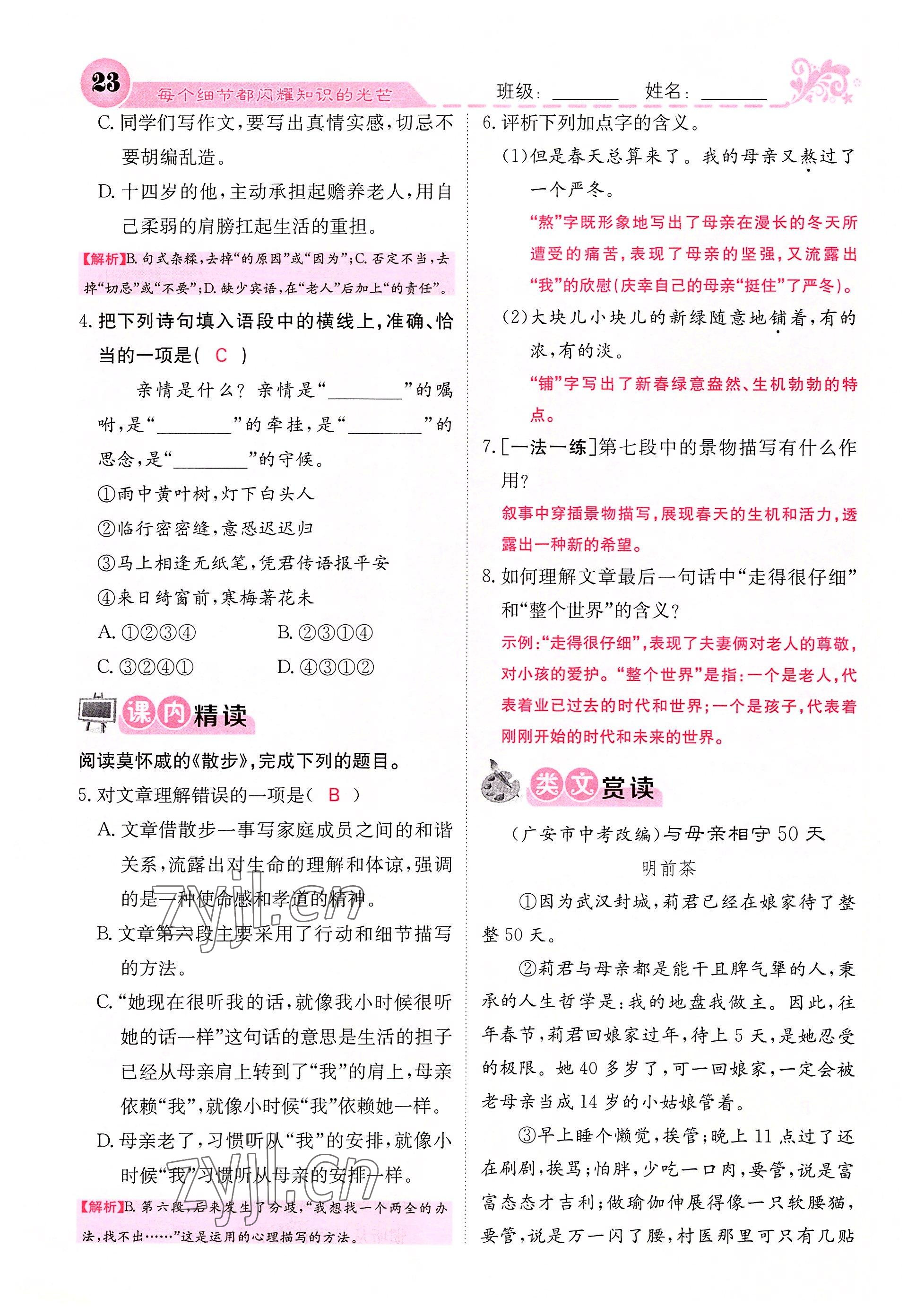 注:目前有些书本章节名称可能整理的还不是很完善,但都是按照顺序排列的,请同学们按照顺序仔细查找。练习册 2022年课堂点睛七年级语文上册人教版四川专版 答案主要是用来给同学们做完题方便对答案用的,请勿直接抄袭。