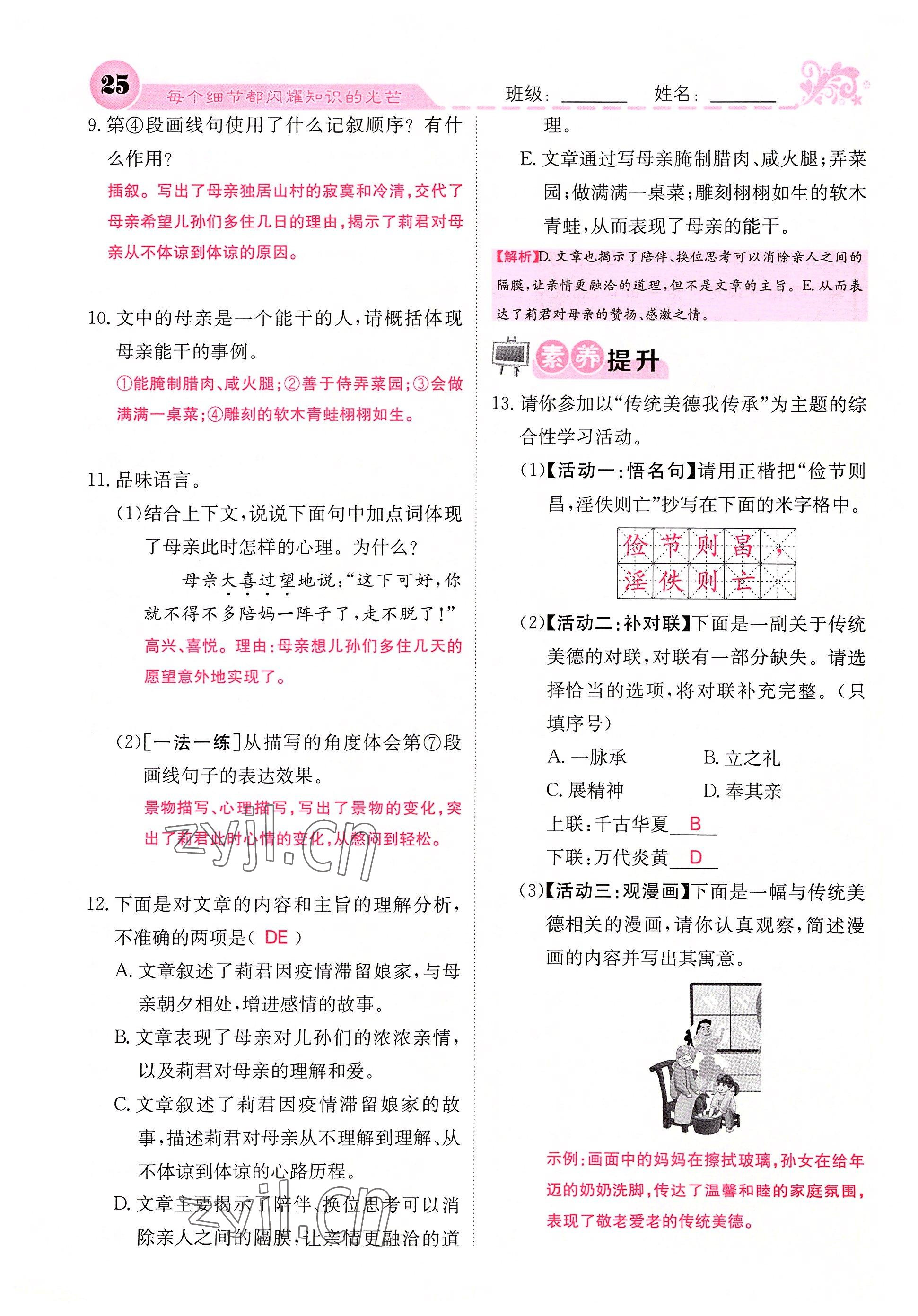 注:目前有些书本章节名称可能整理的还不是很完善,但都是按照顺序排列的,请同学们按照顺序仔细查找。练习册 2022年课堂点睛七年级语文上册人教版四川专版 答案主要是用来给同学们做完题方便对答案用的,请勿直接抄袭。