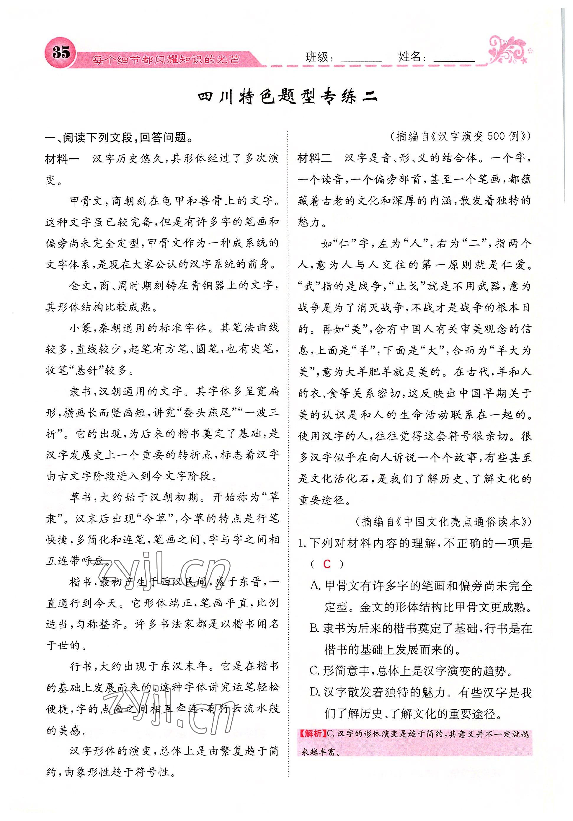 注:目前有些书本章节名称可能整理的还不是很完善,但都是按照顺序排列的,请同学们按照顺序仔细查找。练习册 2022年课堂点睛七年级语文上册人教版四川专版 答案主要是用来给同学们做完题方便对答案用的,请勿直接抄袭。