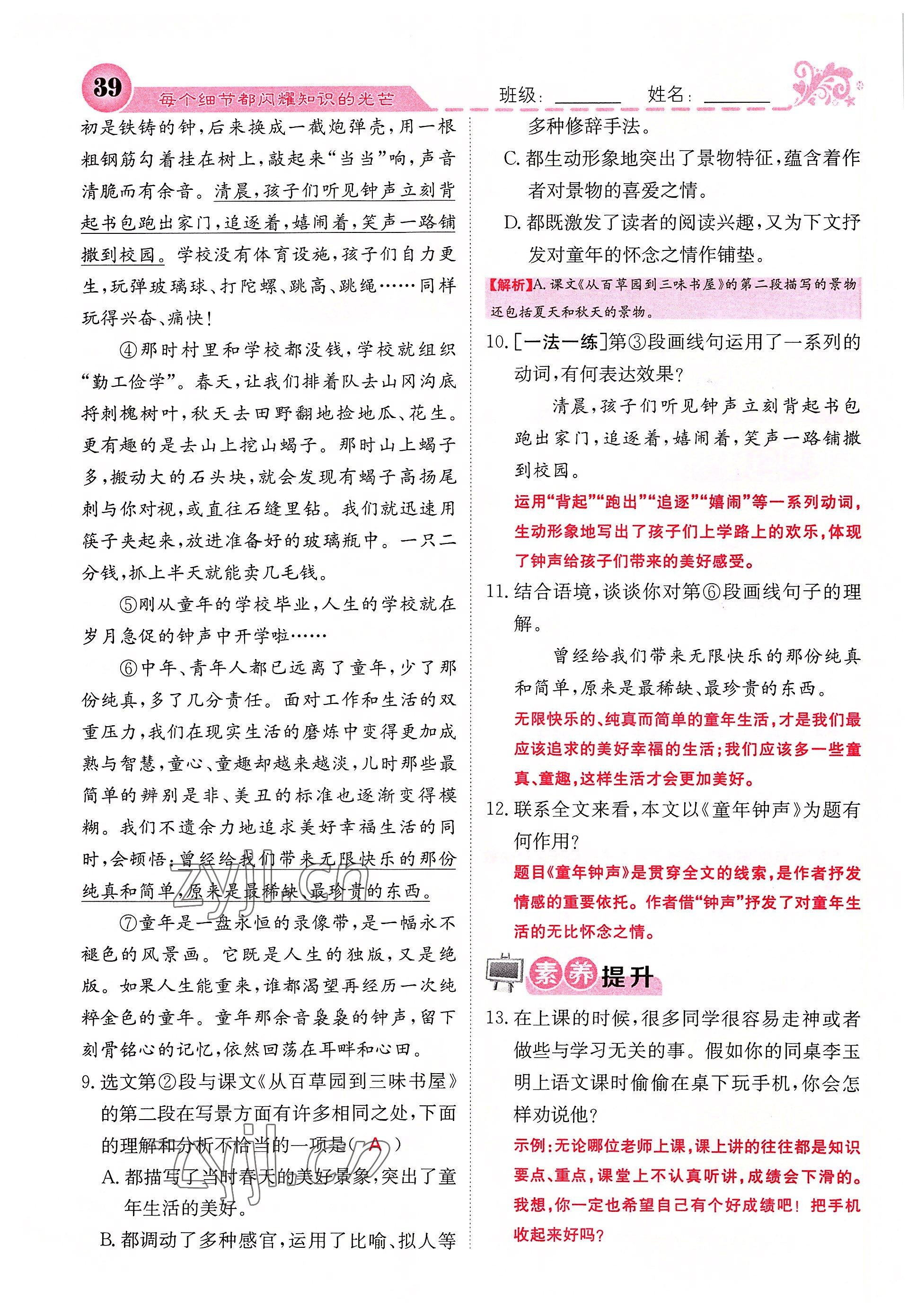 注:目前有些书本章节名称可能整理的还不是很完善,但都是按照顺序排列的,请同学们按照顺序仔细查找。练习册 2022年课堂点睛七年级语文上册人教版四川专版 答案主要是用来给同学们做完题方便对答案用的,请勿直接抄袭。