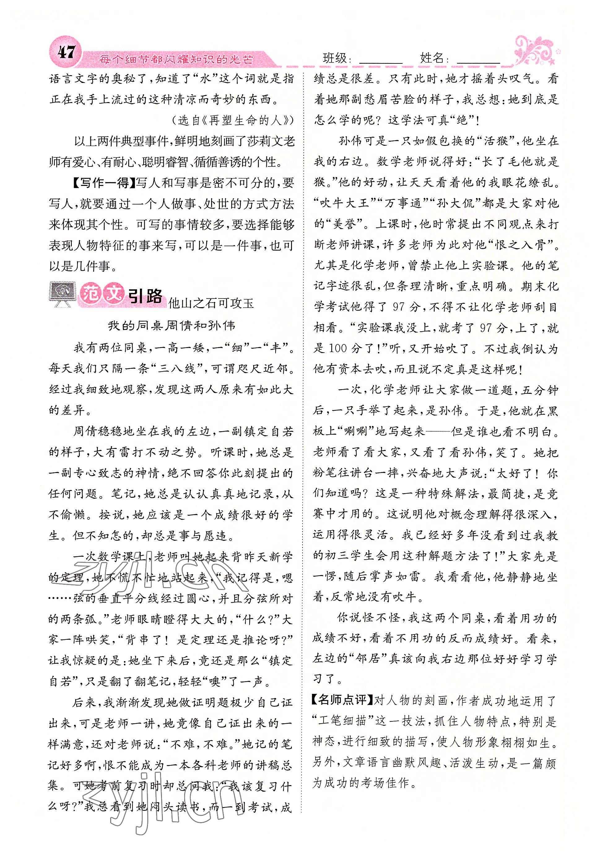 2022年课堂点睛七年级语文上册人教版四川专版
