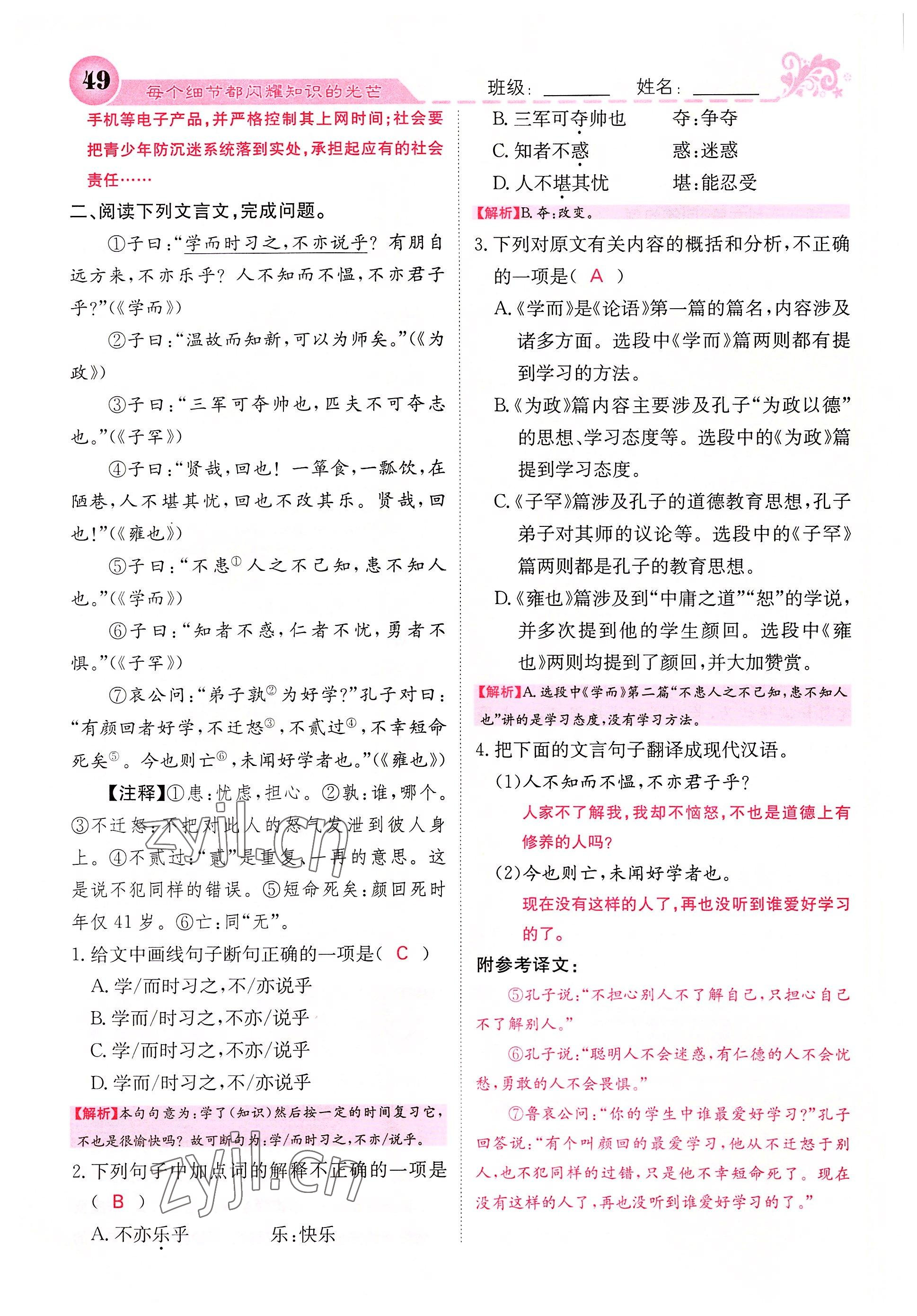 注:目前有些书本章节名称可能整理的还不是很完善,但都是按照顺序排列的,请同学们按照顺序仔细查找。练习册 2022年课堂点睛七年级语文上册人教版四川专版 答案主要是用来给同学们做完题方便对答案用的,请勿直接抄袭。