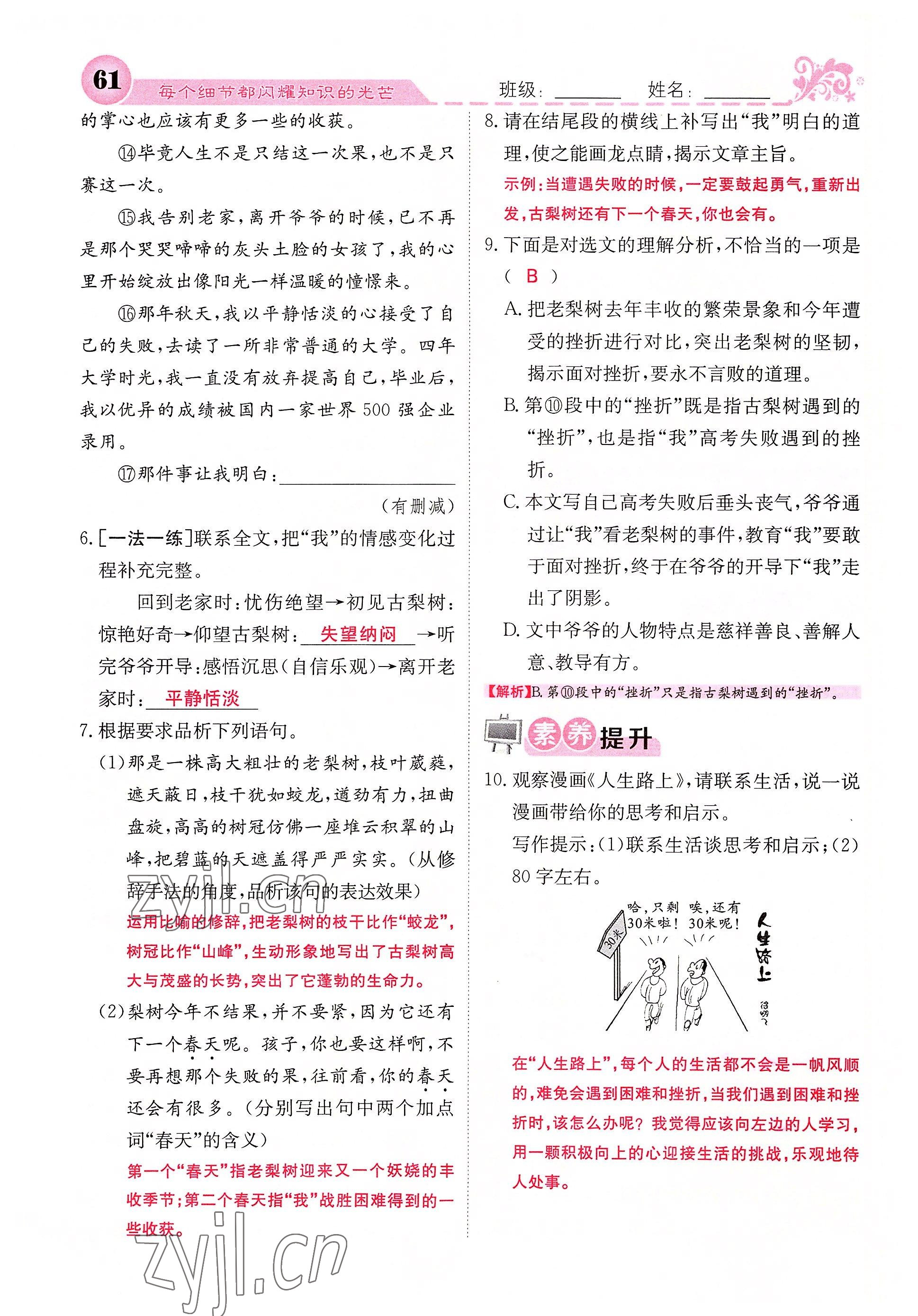注:目前有些书本章节名称可能整理的还不是很完善,但都是按照顺序排列的,请同学们按照顺序仔细查找。练习册 2022年课堂点睛七年级语文上册人教版四川专版 答案主要是用来给同学们做完题方便对答案用的,请勿直接抄袭。