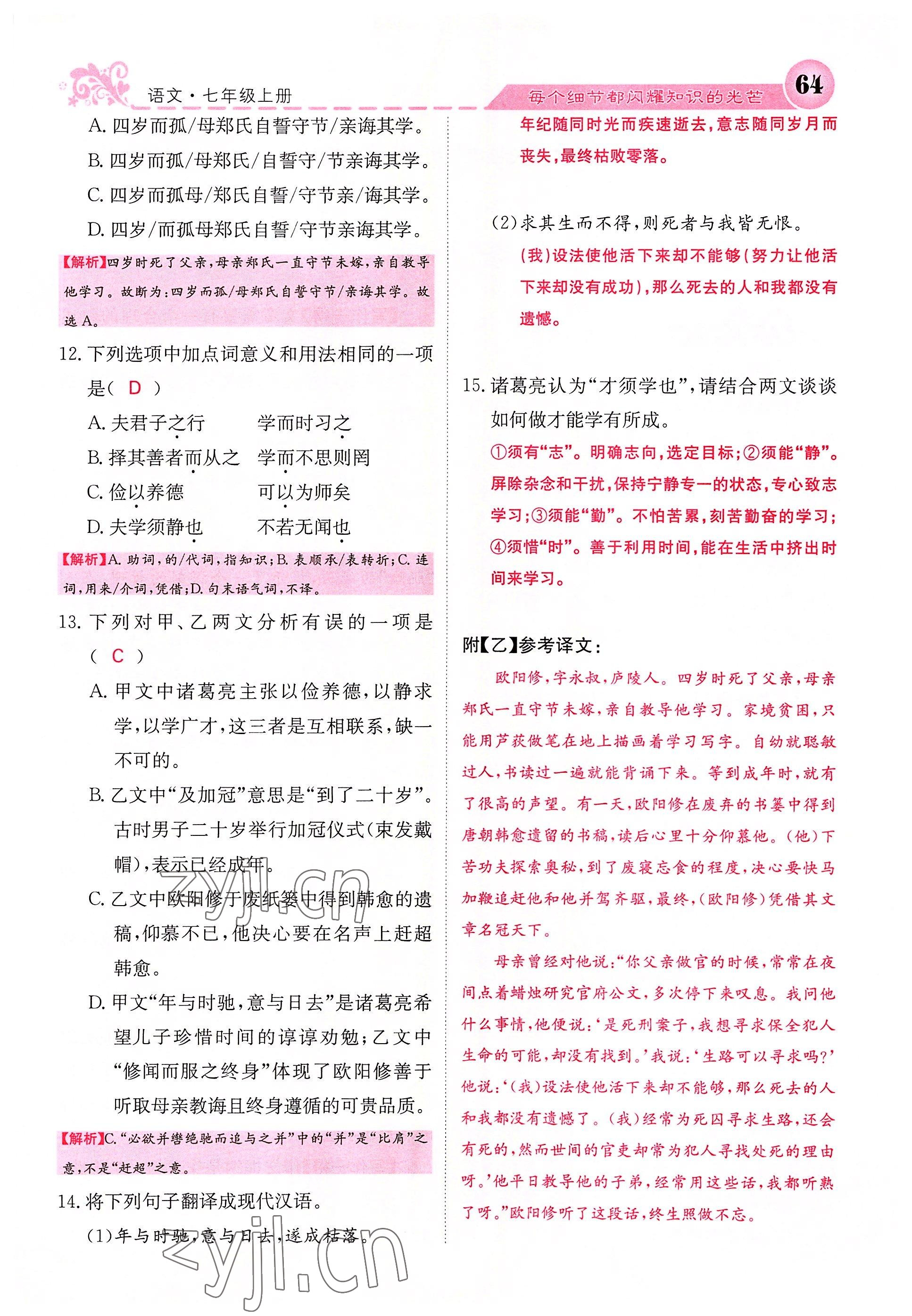 注:目前有些书本章节名称可能整理的还不是很完善,但都是按照顺序排列的,请同学们按照顺序仔细查找。练习册 2022年课堂点睛七年级语文上册人教版四川专版 答案主要是用来给同学们做完题方便对答案用的,请勿直接抄袭。