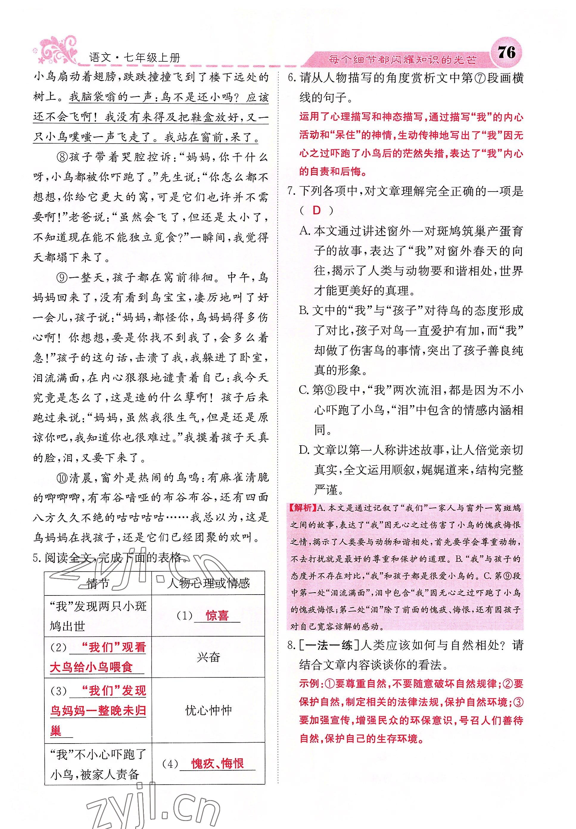 2022年课堂点睛七年级语文上册人教版四川专版