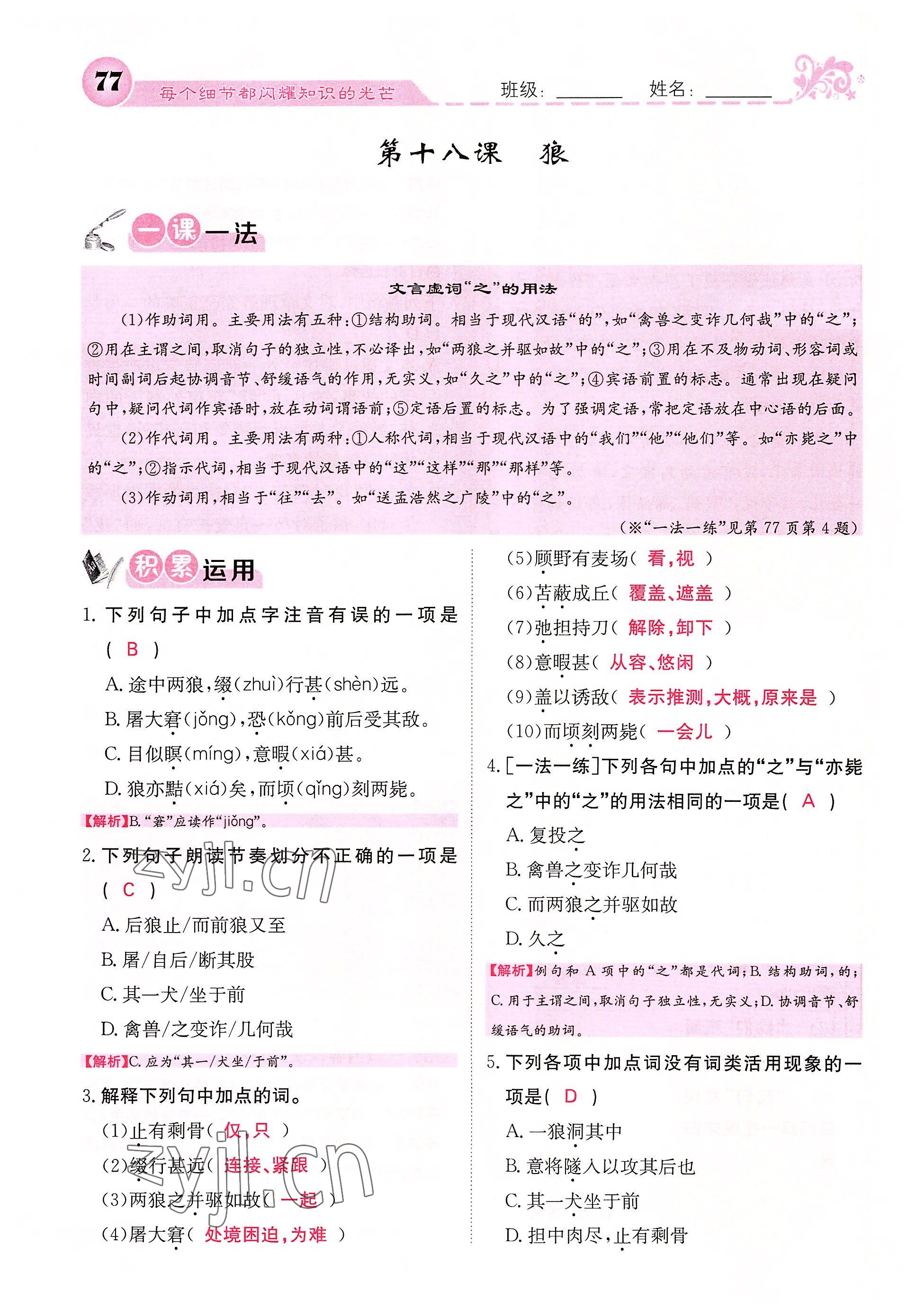 - 参考答案第77页