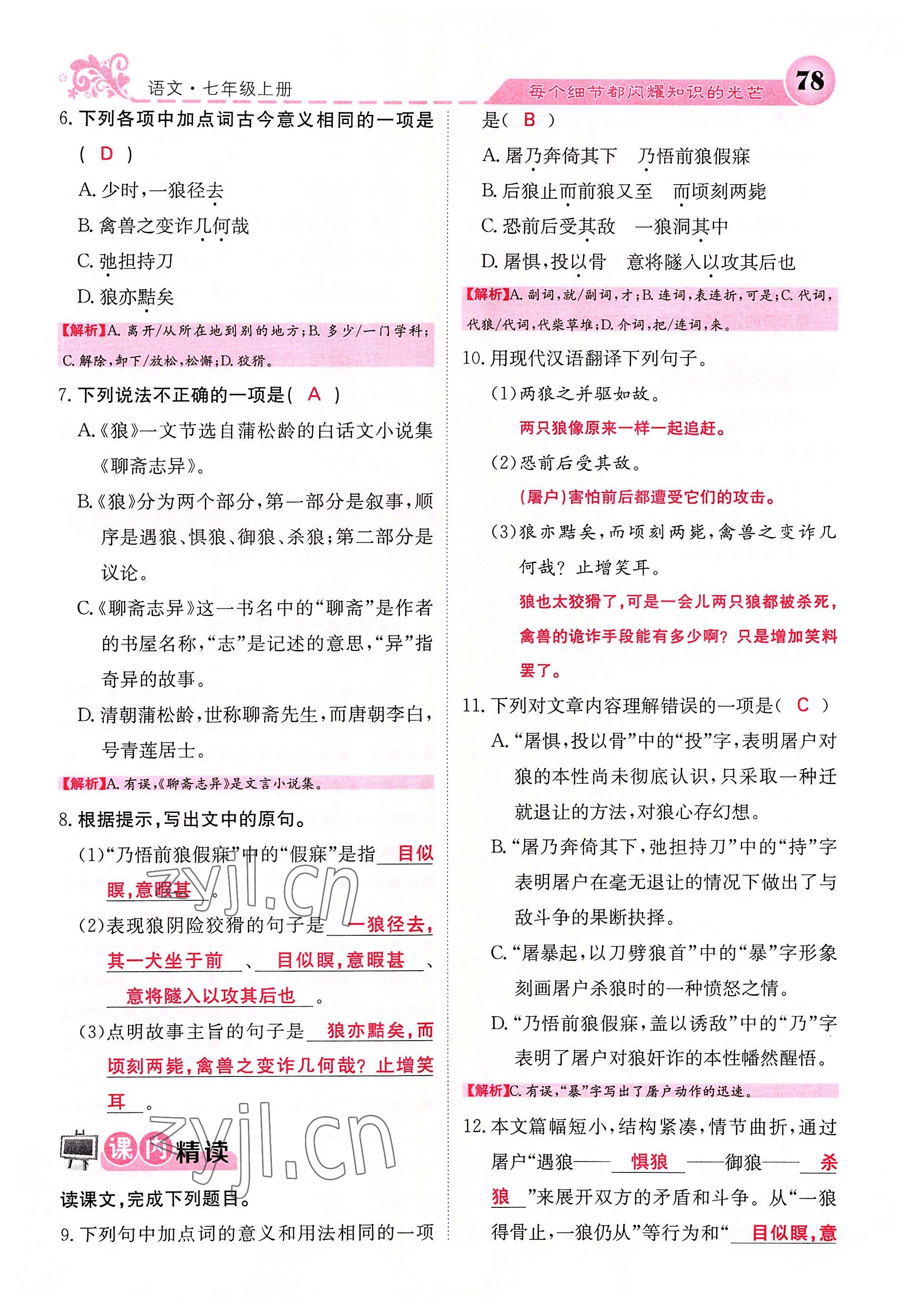 注:目前有些书本章节名称可能整理的还不是很完善,但都是按照顺序排列的,请同学们按照顺序仔细查找。练习册 2022年课堂点睛七年级语文上册人教版四川专版 答案主要是用来给同学们做完题方便对答案用的,请勿直接抄袭。