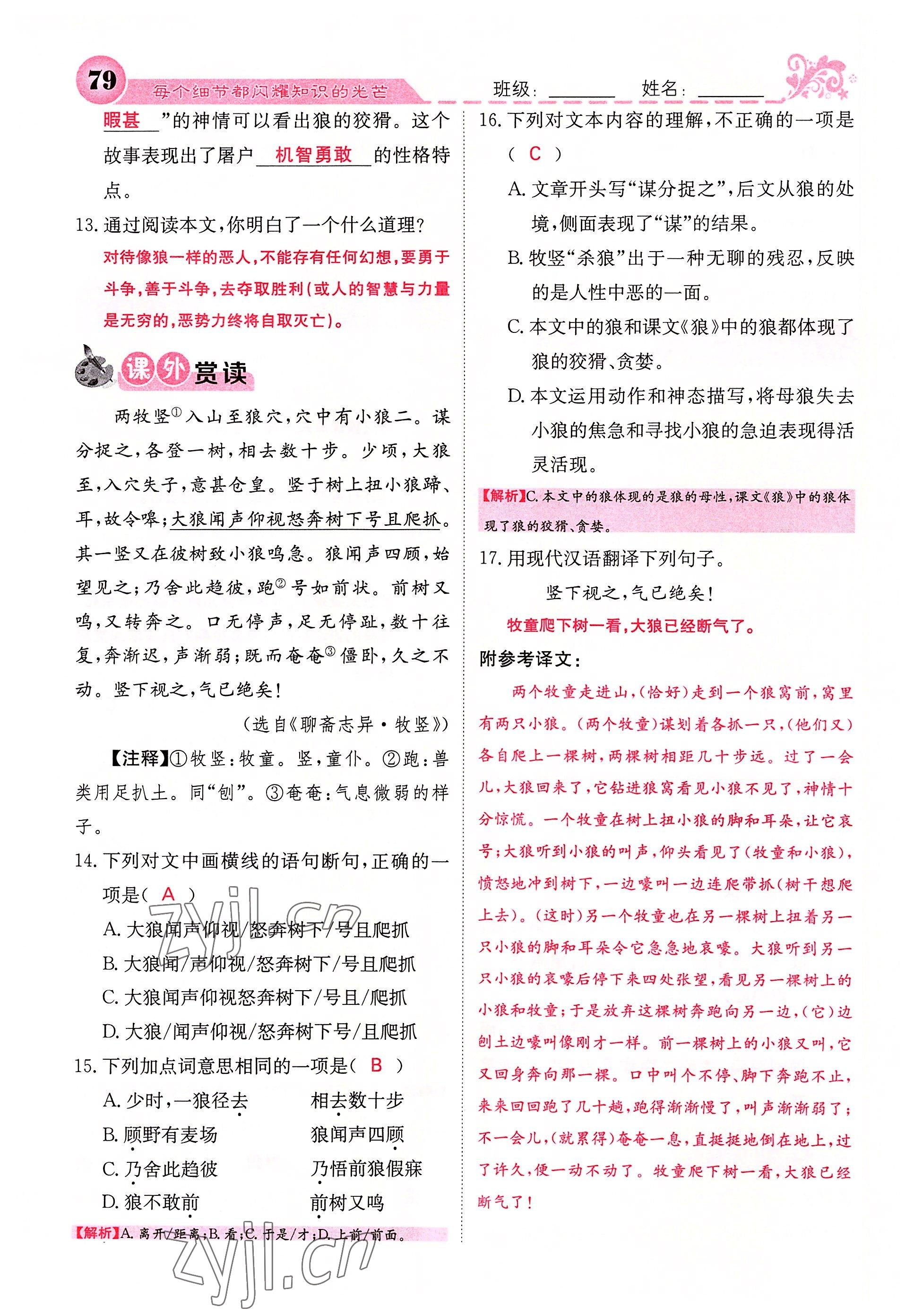 注:目前有些书本章节名称可能整理的还不是很完善,但都是按照顺序排列的,请同学们按照顺序仔细查找。练习册 2022年课堂点睛七年级语文上册人教版四川专版 答案主要是用来给同学们做完题方便对答案用的,请勿直接抄袭。