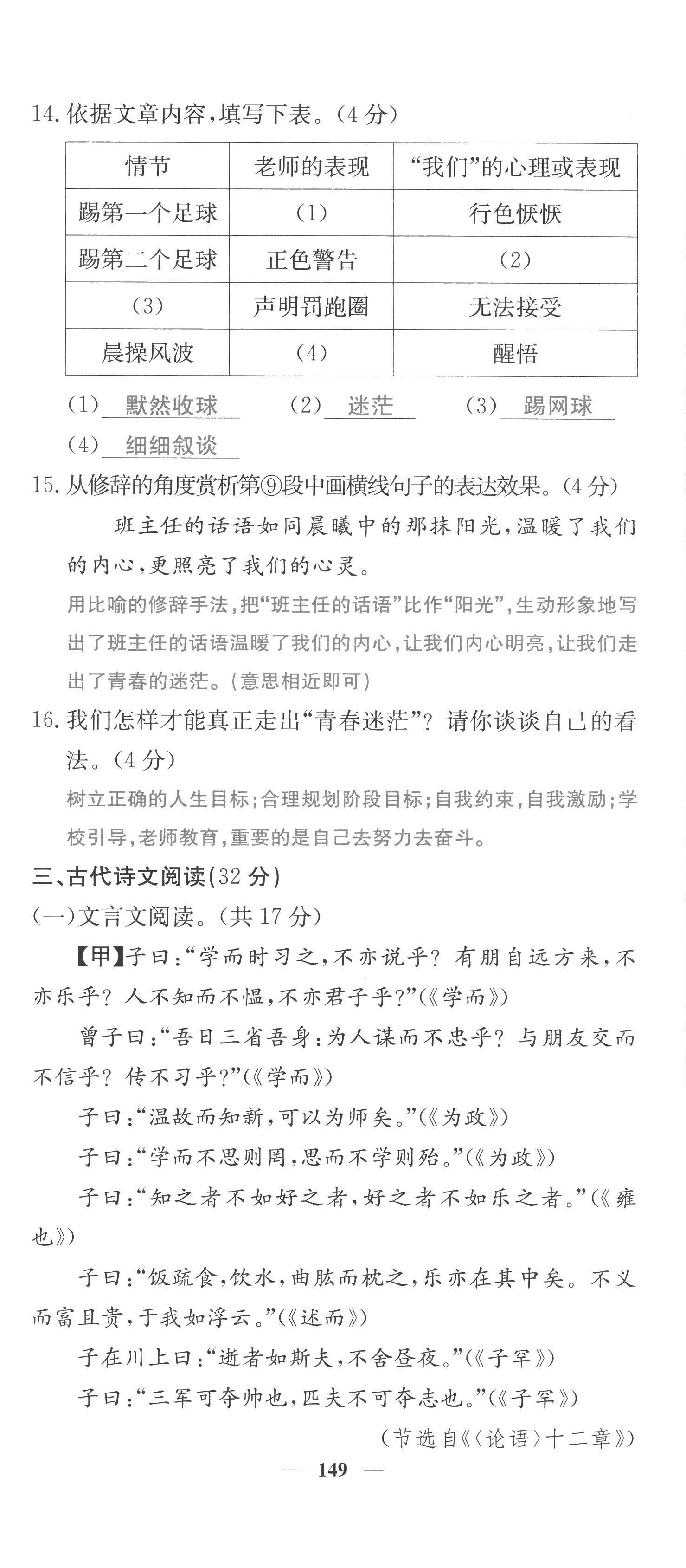 注:目前有些书本章节名称可能整理的还不是很完善,但都是按照顺序排列的,请同学们按照顺序仔细查找。练习册 2022年课堂点睛七年级语文上册人教版四川专版 答案主要是用来给同学们做完题方便对答案用的,请勿直接抄袭。
