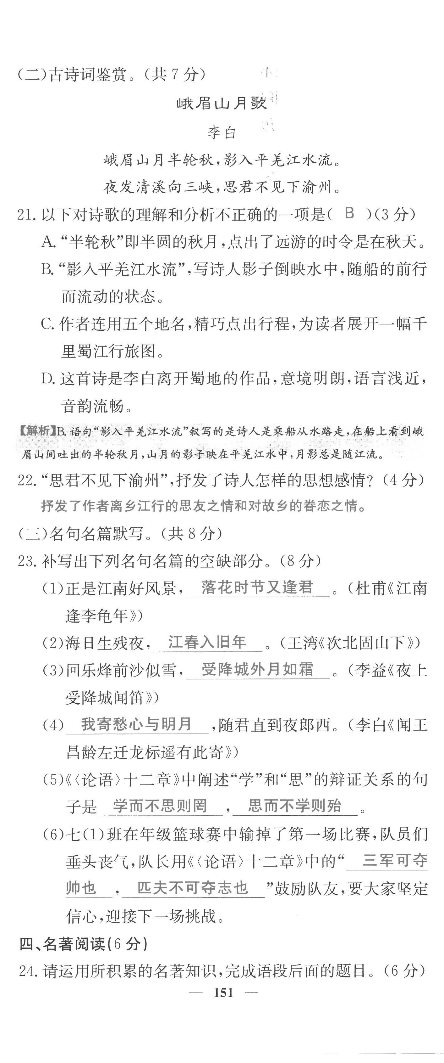 注:目前有些书本章节名称可能整理的还不是很完善,但都是按照顺序排列的,请同学们按照顺序仔细查找。练习册 2022年课堂点睛七年级语文上册人教版四川专版 答案主要是用来给同学们做完题方便对答案用的,请勿直接抄袭。